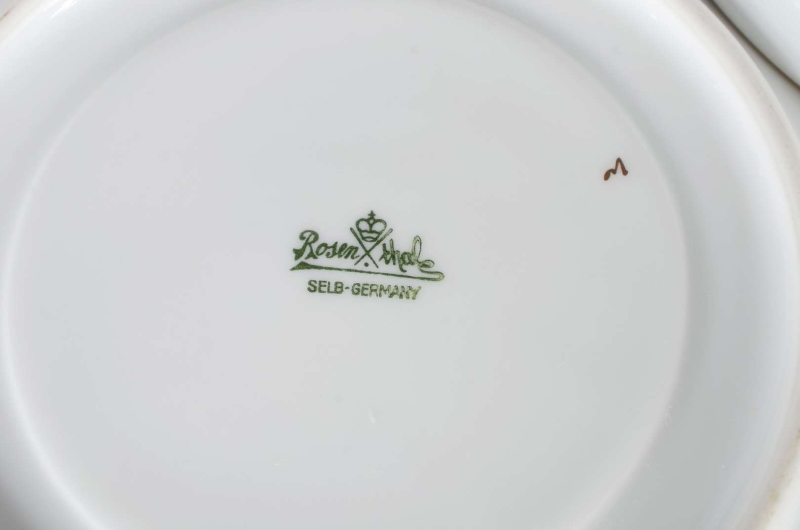 Serviço de chá de porcelana alemã RS, decorado com flores amarelas ao centro e borda com realces dourados e perolados...