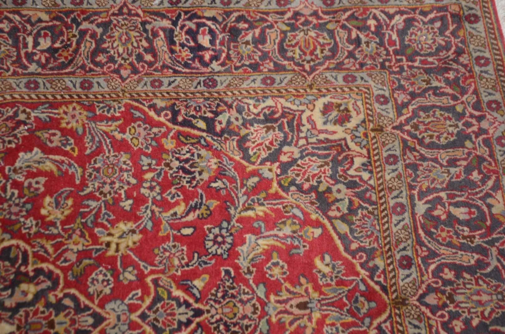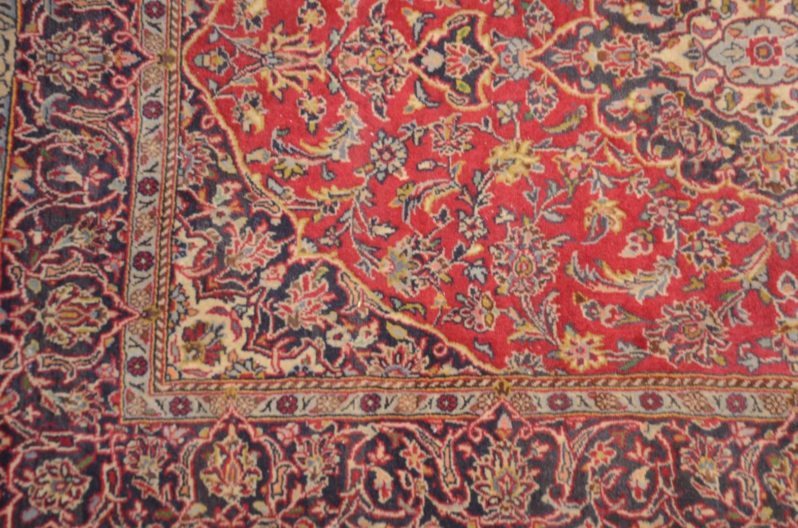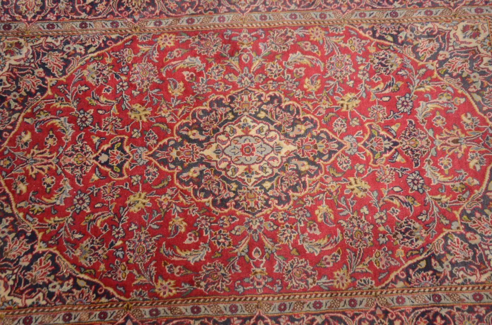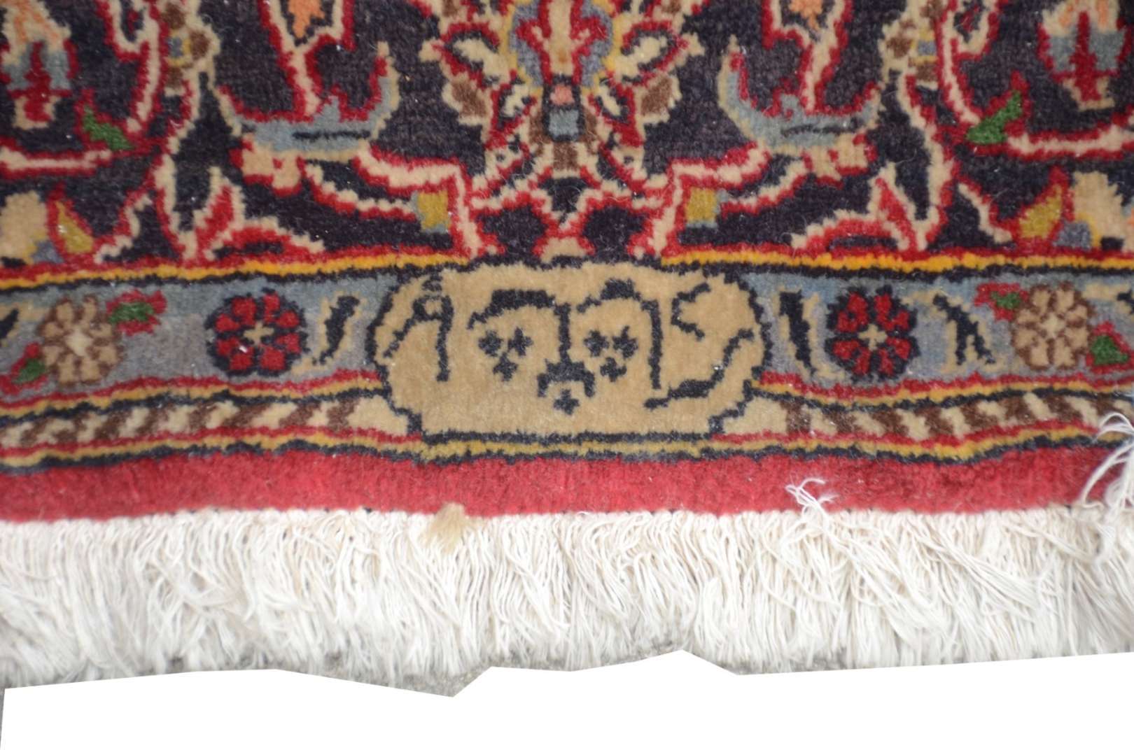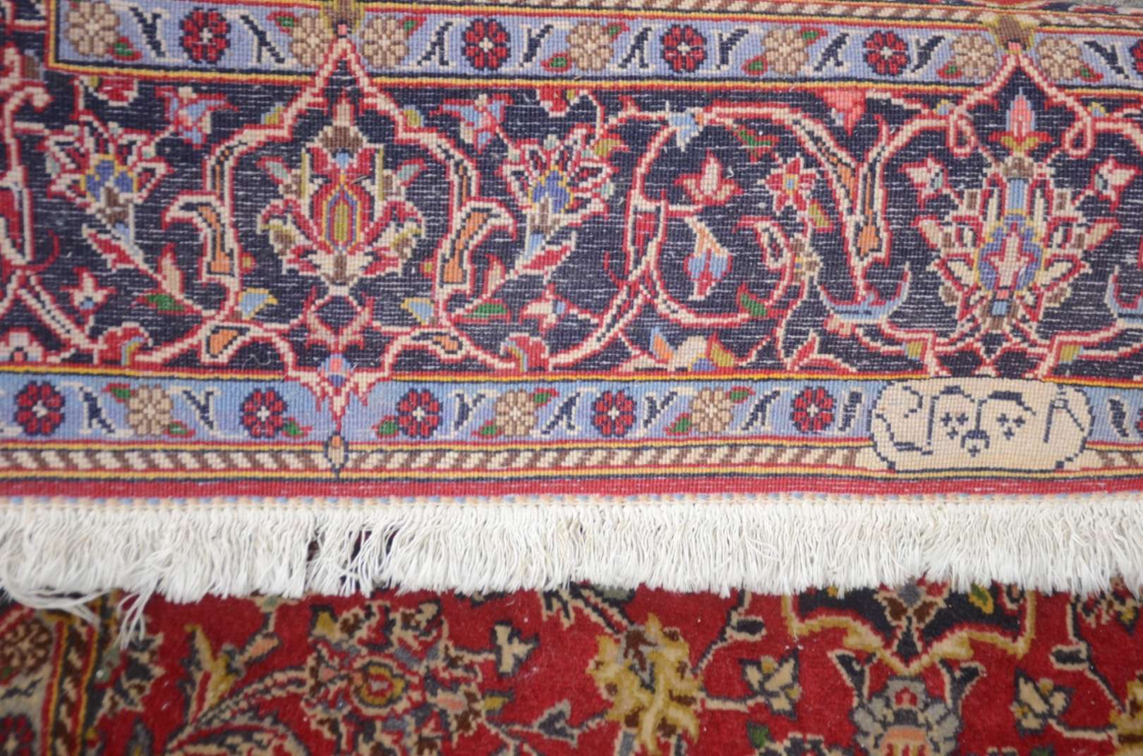 Antiga tapeçaria trabalhada com figura de ânfora com flores, borda com faixas amarelas e guirlandas coloridas, século...