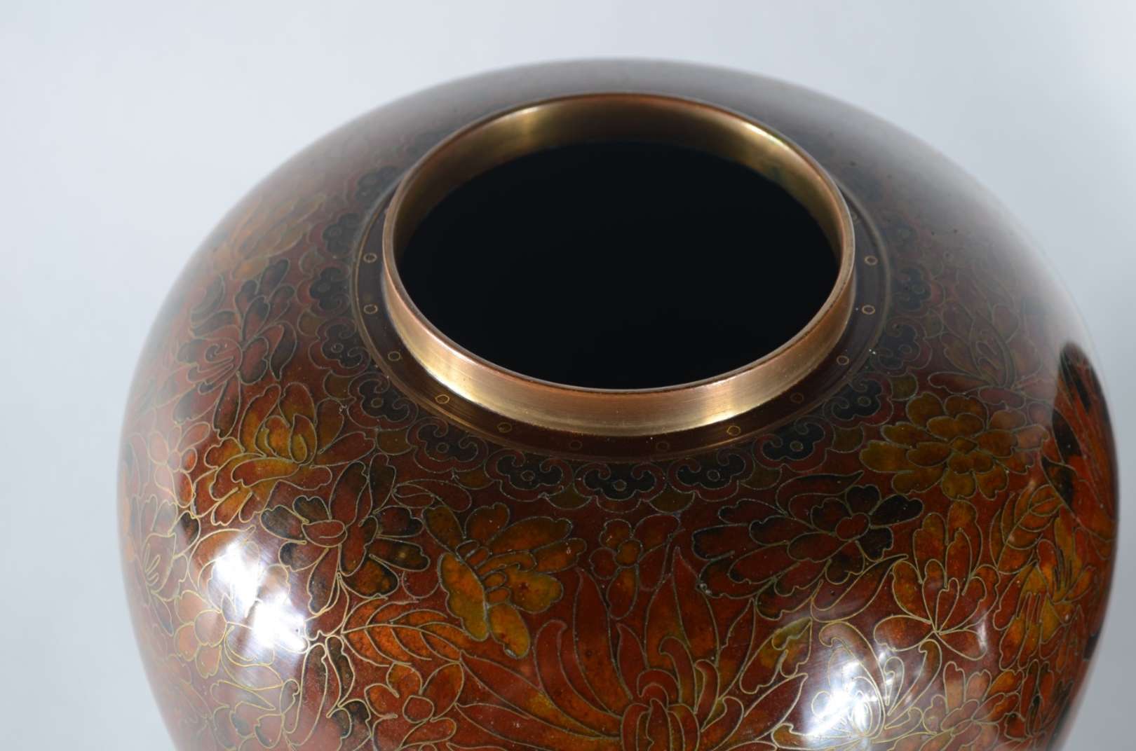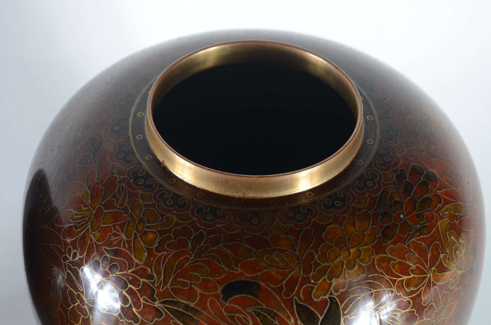 Dois vasos de cloisoné chines, decoração floral em policromia. Pequenos desgastes.