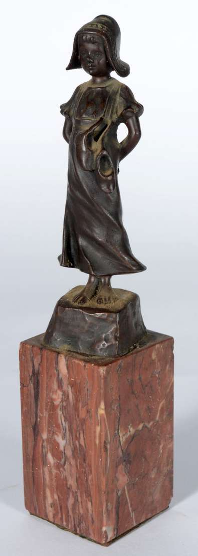 Três peças pequenas de marfim, bases de madeira. Pequenos defeitos.