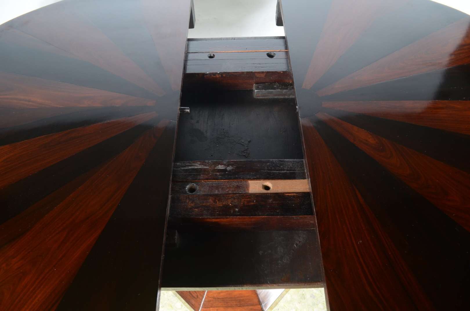Aparador de madeira nobre, tampo recortado, pernas arqueadas ligadas por traves inferiores arrematadas por pino centr...