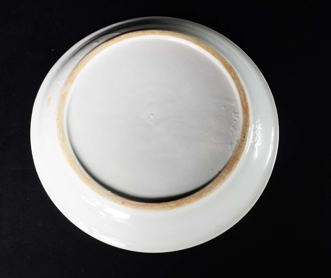 Jarra de porcelana feitio oitavado decorado com figuras em policromia e realces dourados.