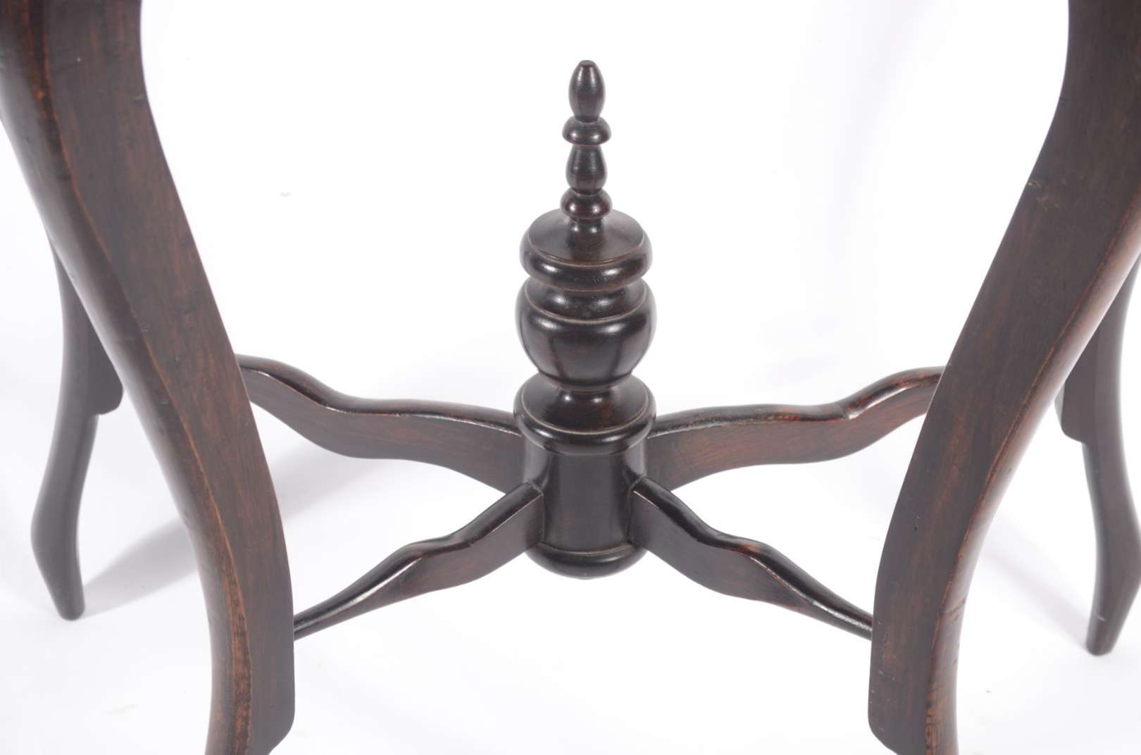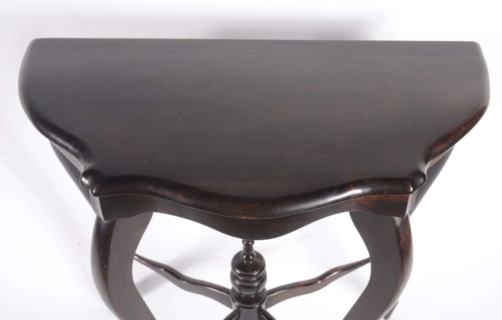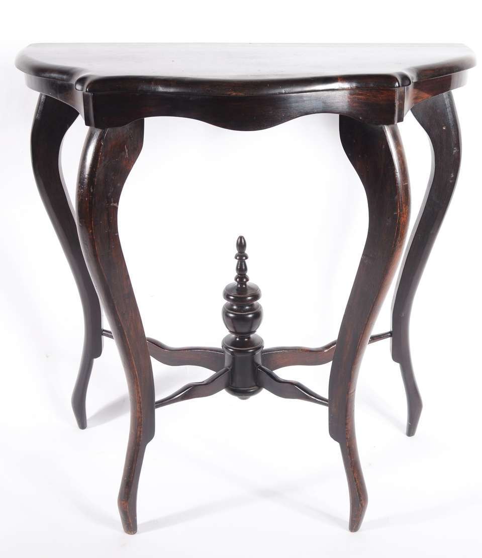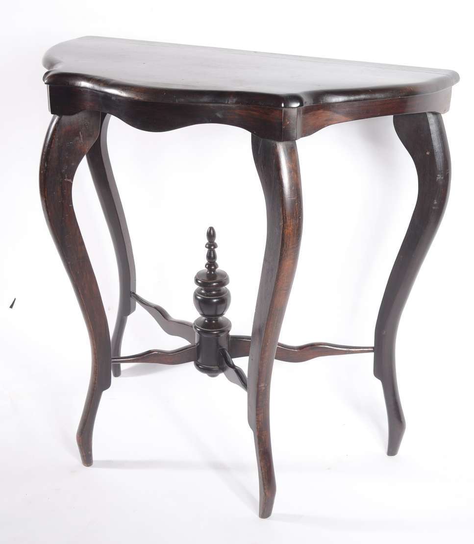Aparador de madeira nobre patinada, duas pernas arqueadas com entalhes ligadas por trave inferior arrematada por pino...