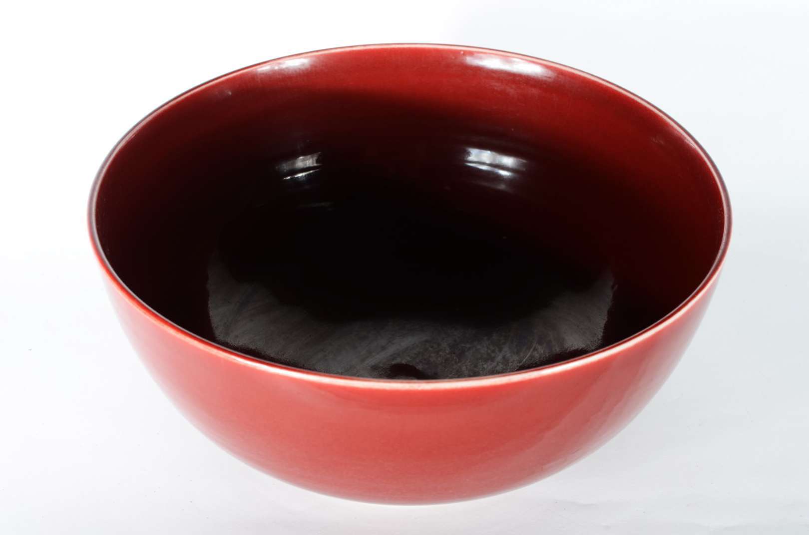 Cachepot com prato de porcelana oriental azul e branca (fio de cabelo no fundo).