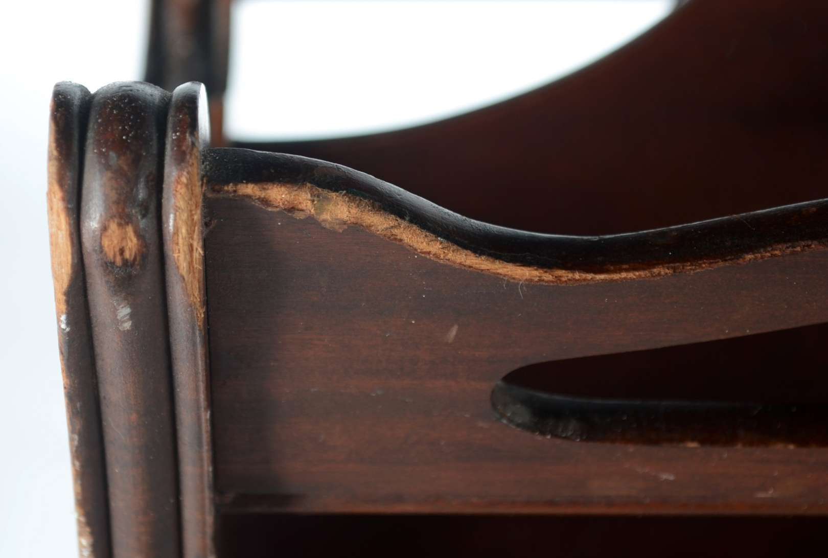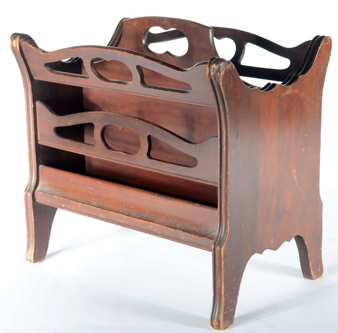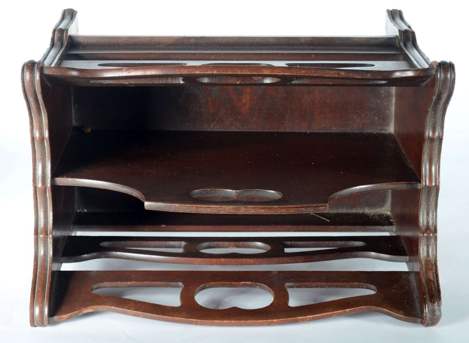 Aparador de madeira nobre, tampo recortado, pernas arqueadas ligadas por traves inferiores arrematadas por pino centr...