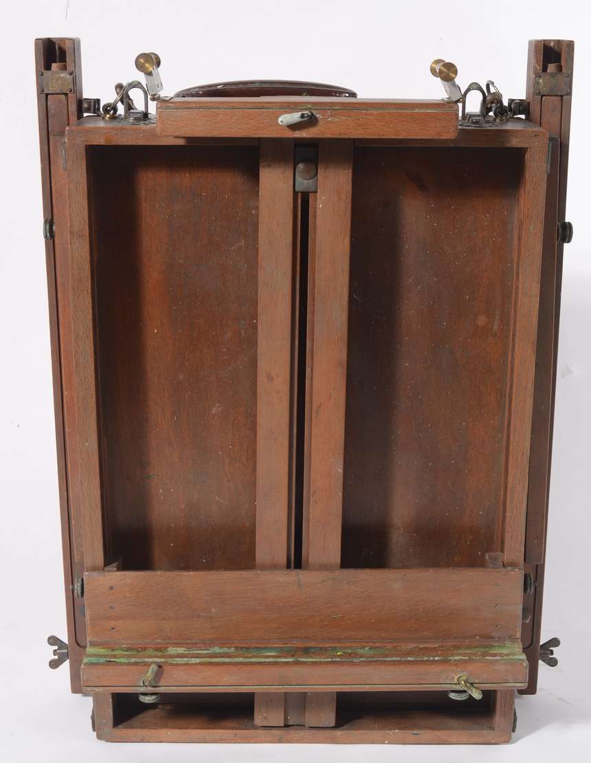 Aparador de madeira nobre, tampo recortado, pernas arqueadas ligadas por traves inferiores arrematadas por pino centr...