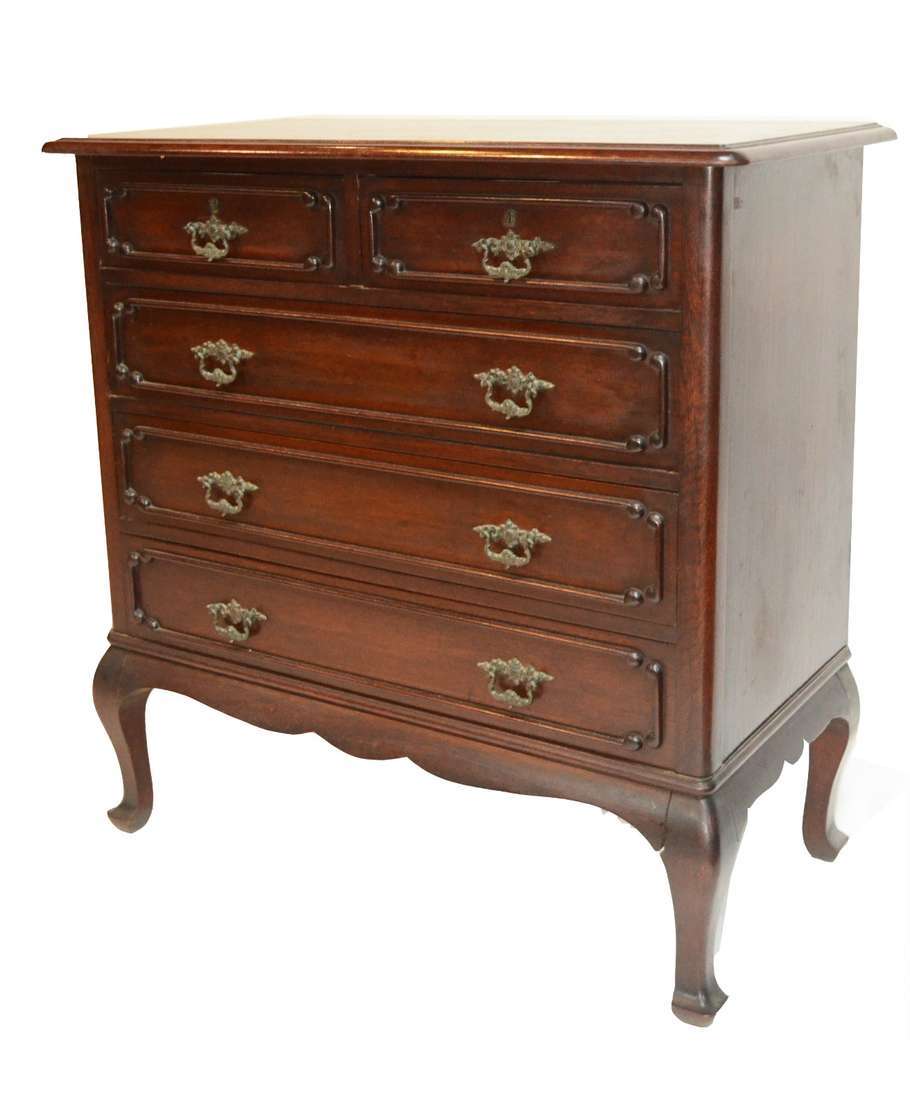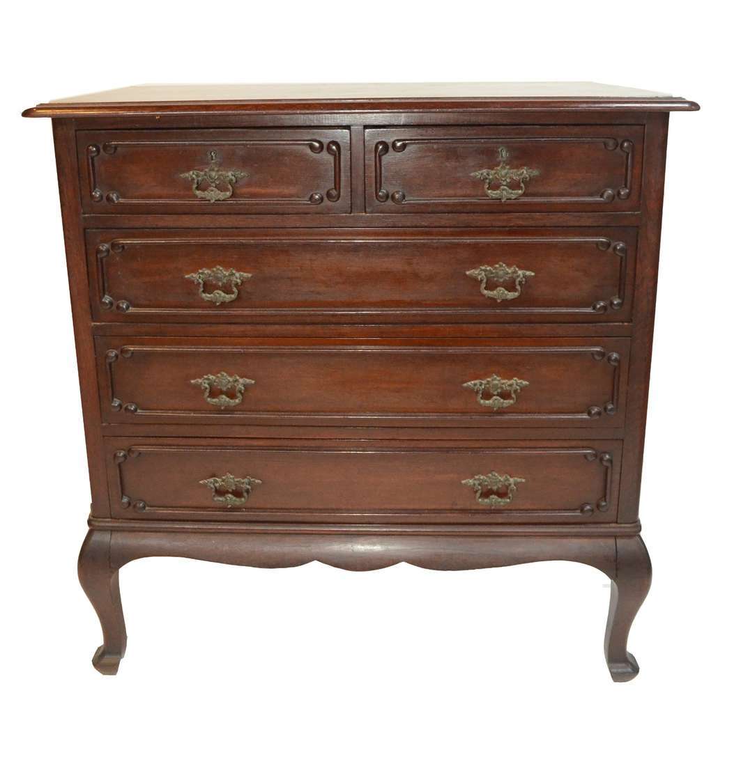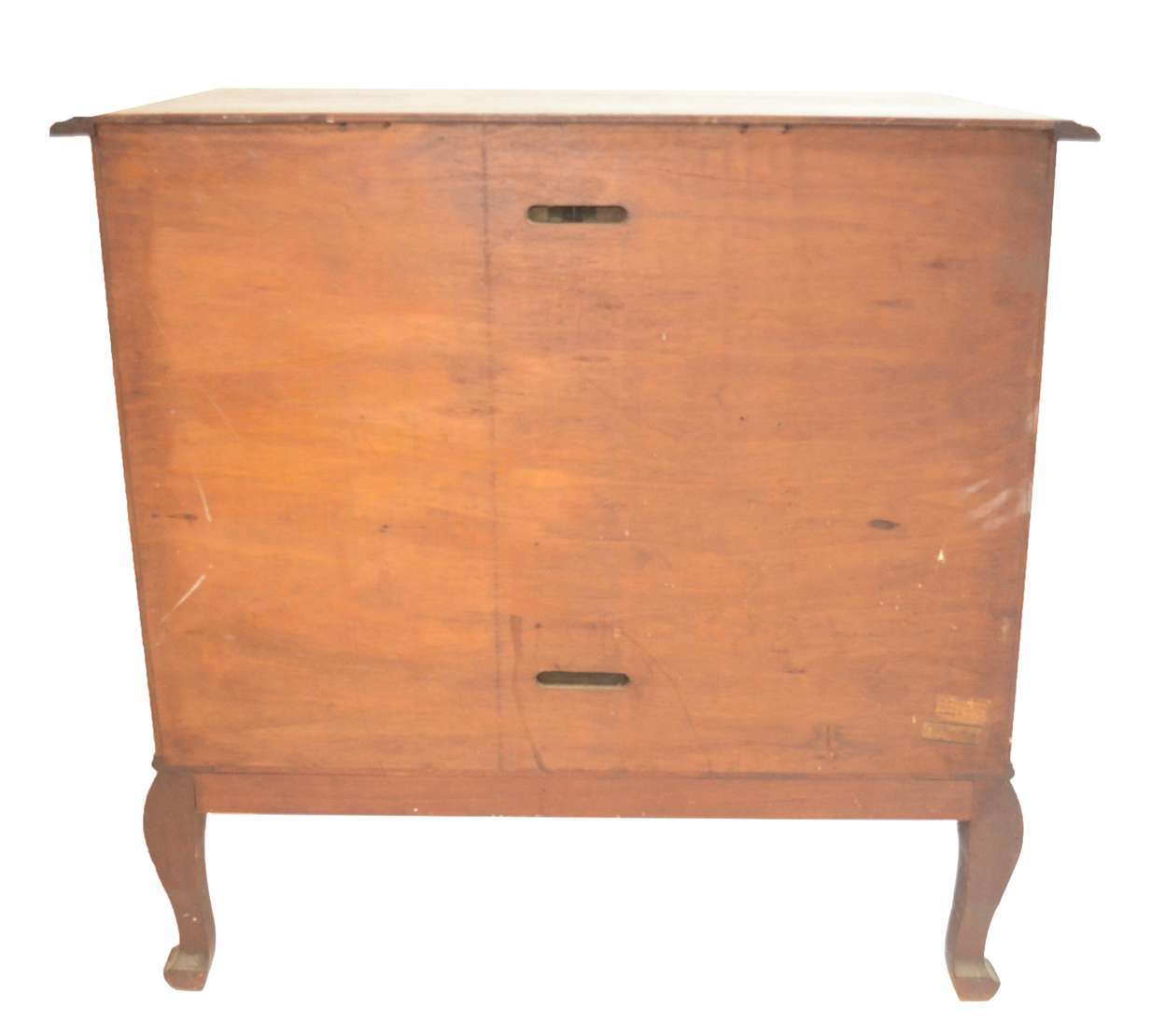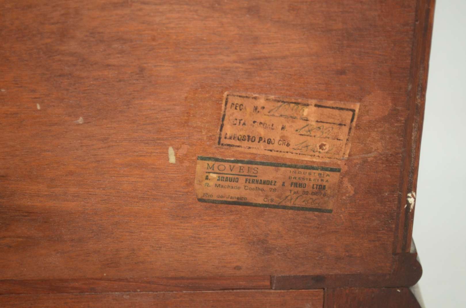 Aparador de madeira nobre, tampo recortado, pernas arqueadas ligadas por traves inferiores arrematadas por pino centr...