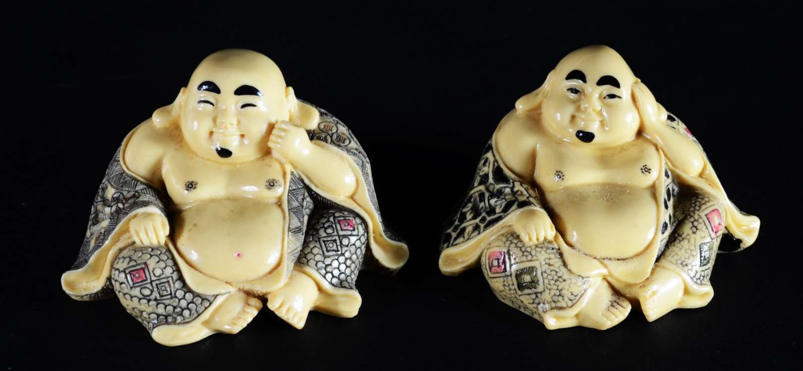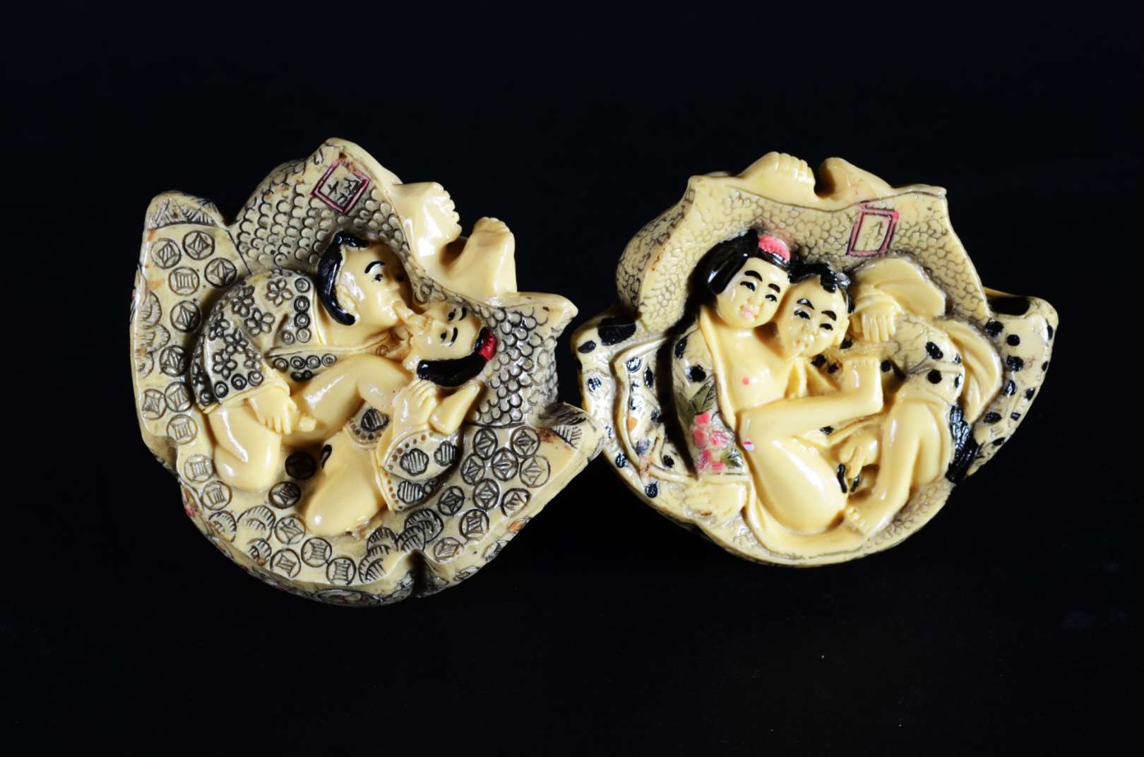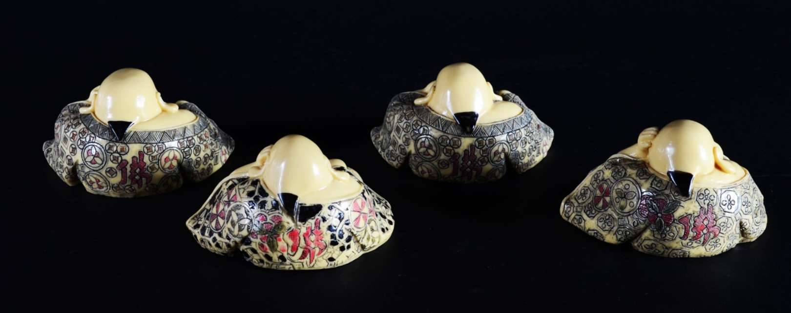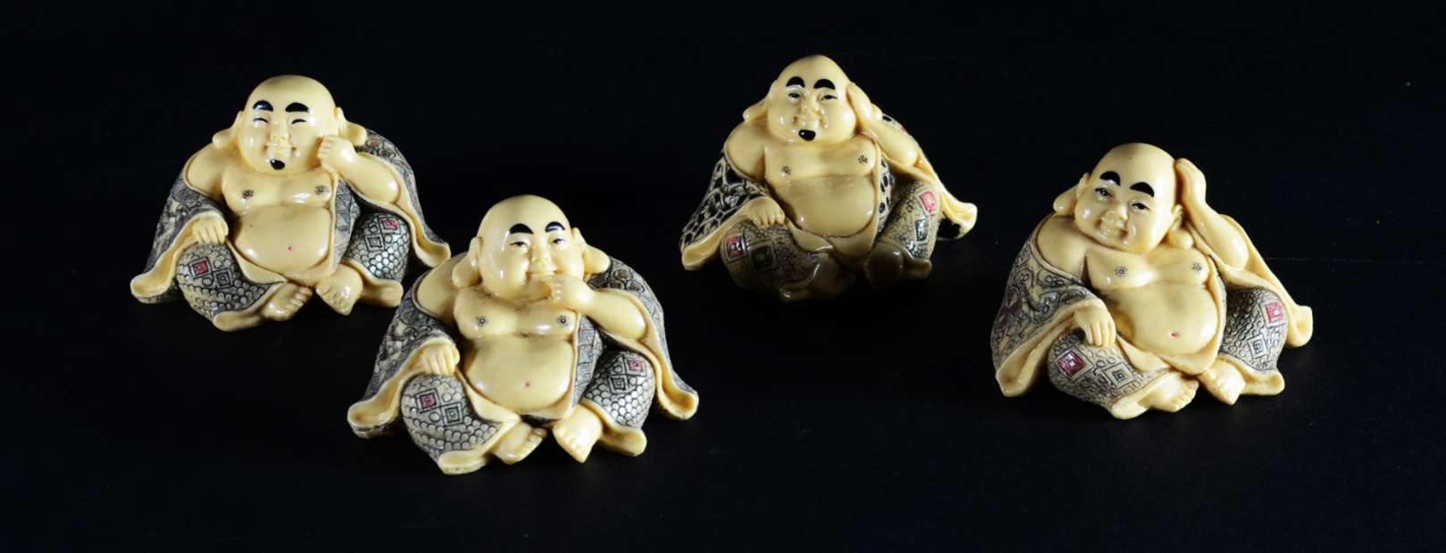 Três peças pequenas de marfim, bases de madeira. Pequenos defeitos.