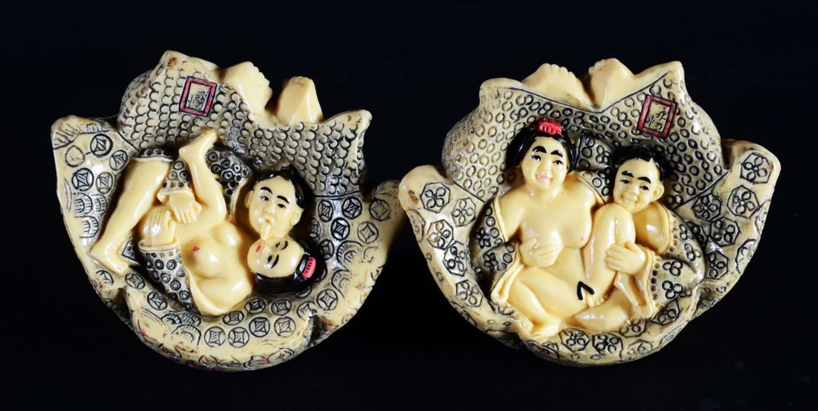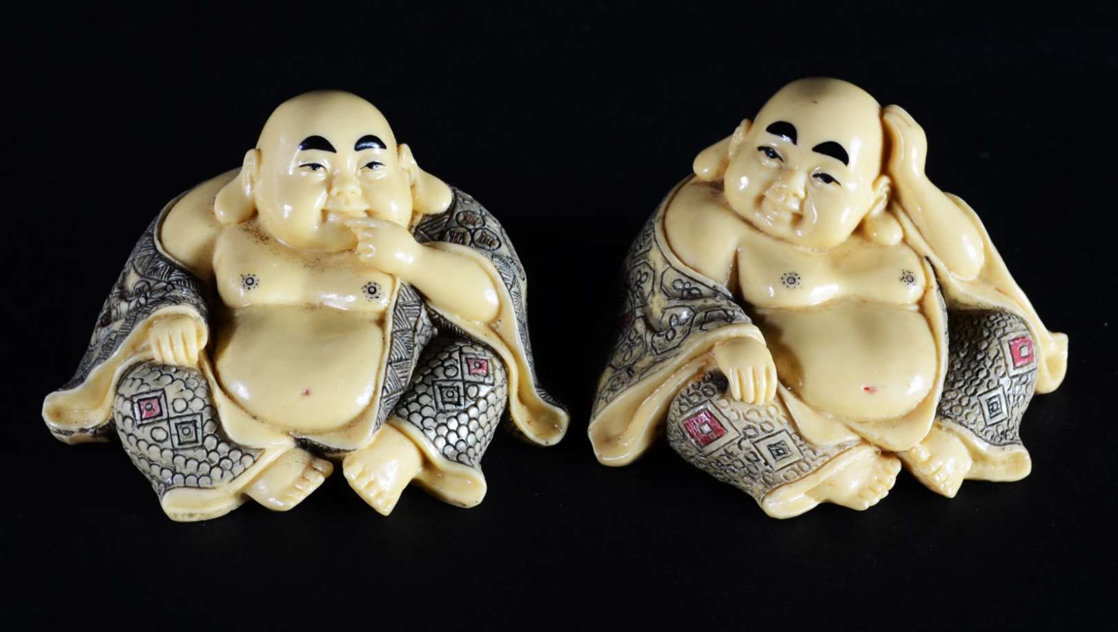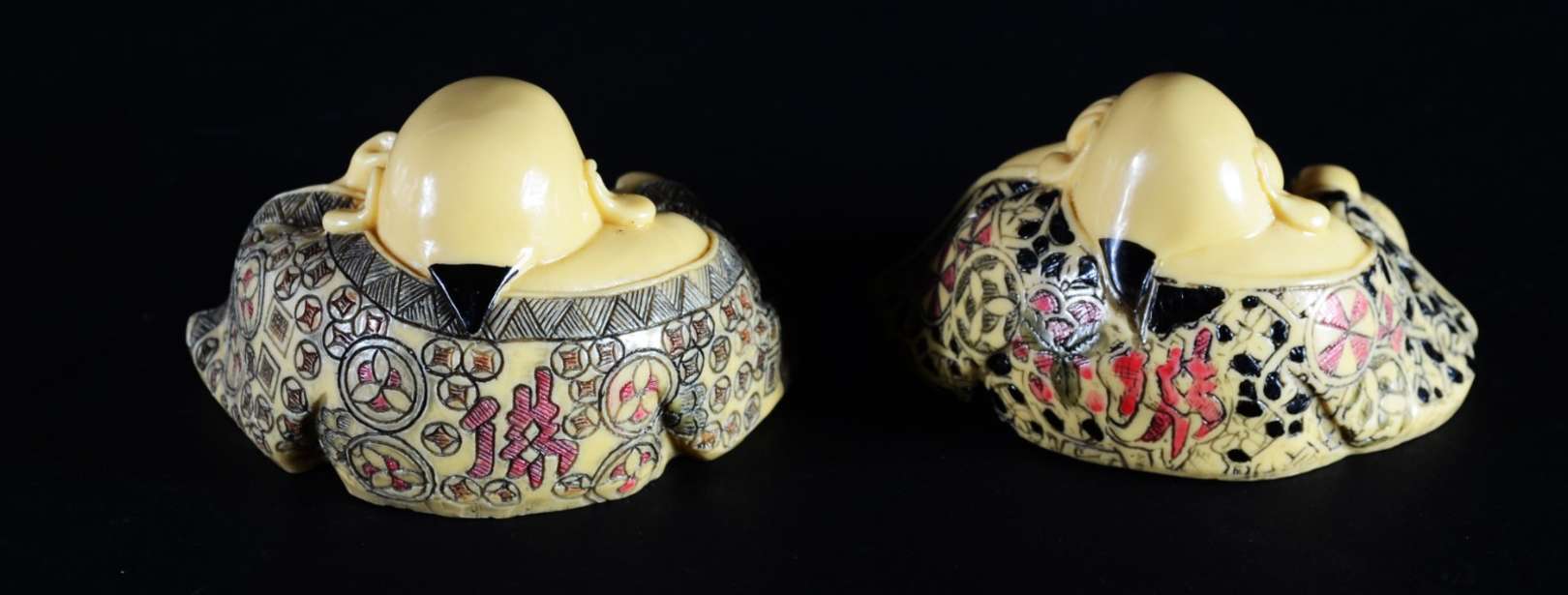 Três peças pequenas de marfim, bases de madeira. Pequenos defeitos.