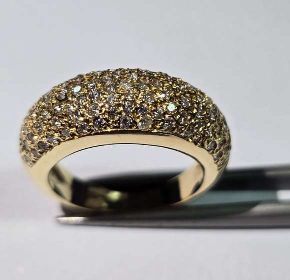 Anel de ouro 18 k., com pavê de diamantes de aproximadamente 1,10 ct, aro 15. (Por motivos de segurança a peça não se...