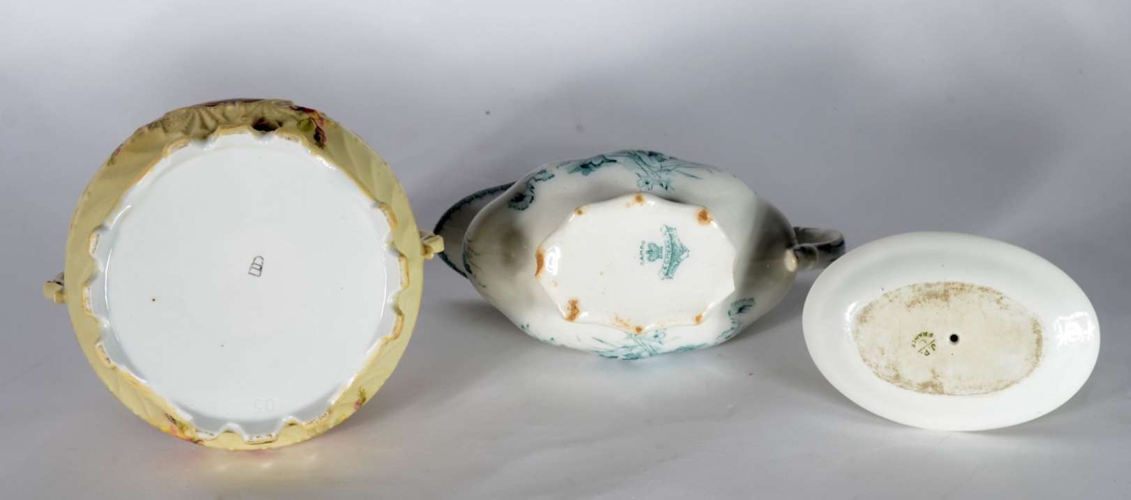 Três peças orientais diversas, sendo: dois porta incensos de madeira trabalhada e porta petiscos de material sintétic...