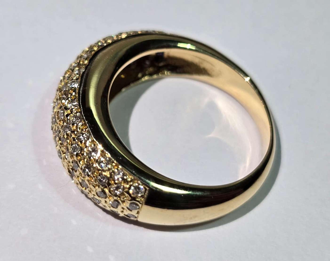 Anel de ouro 18 k., com diamantes brancos e marrons de aproximadamente 1.92 ct, aro 16. (Por motivos de segurança a p...