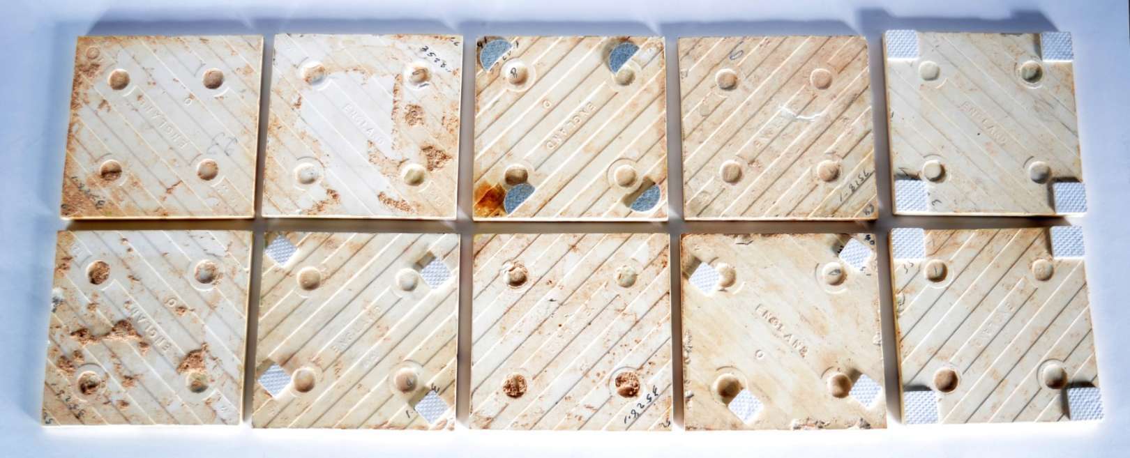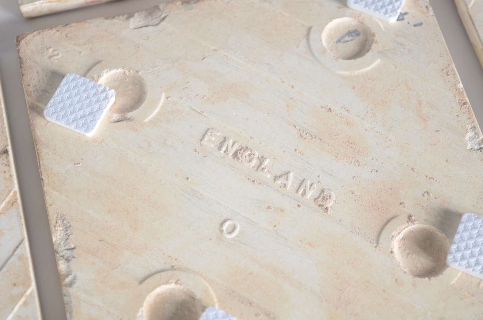 Dois pratos de porcelana oriental com decoração em policromia. Um deles com fios de cabelo.