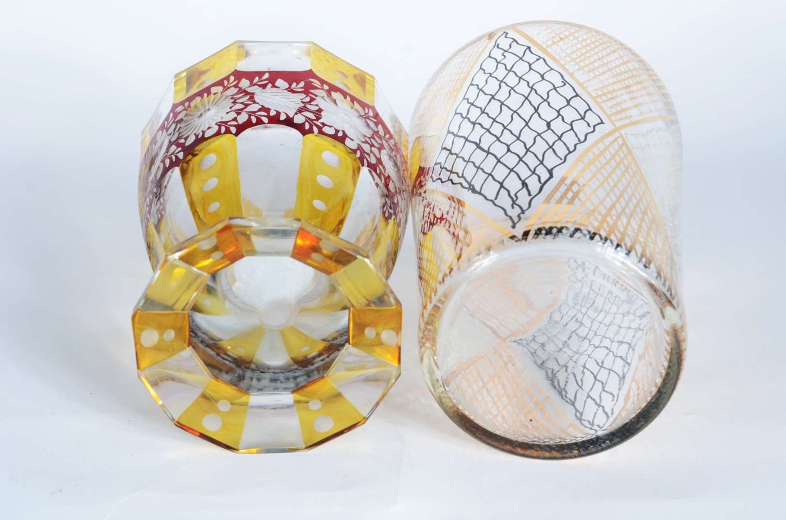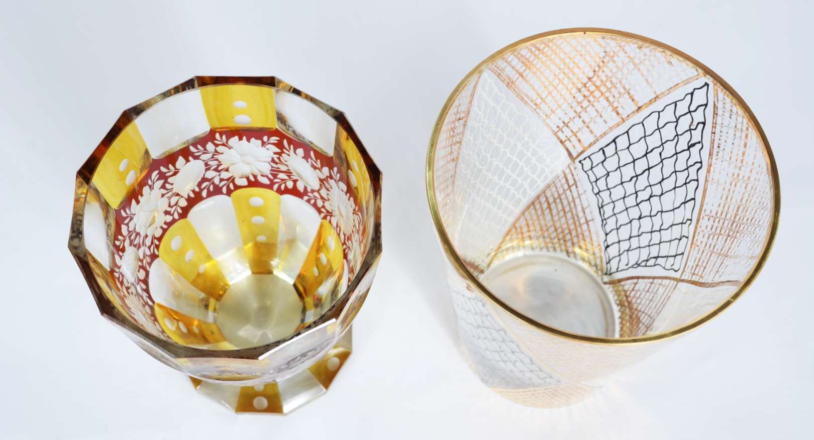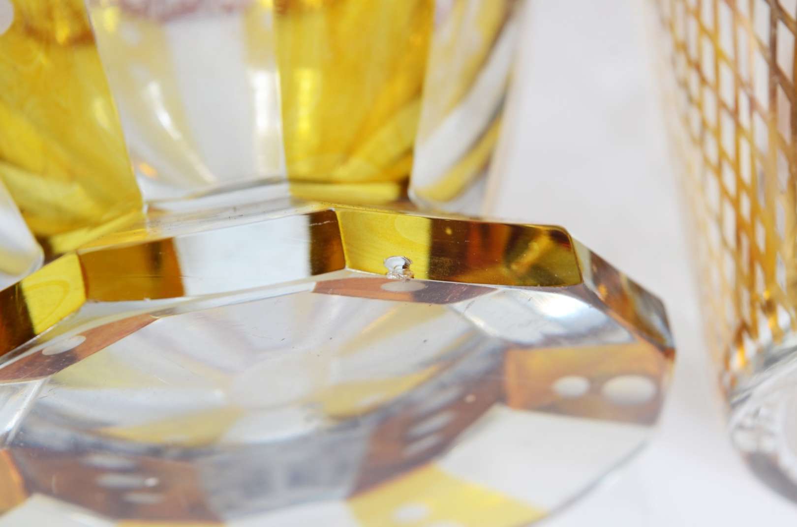 Vaso de cristal tcheco lapidado, borda recortada.