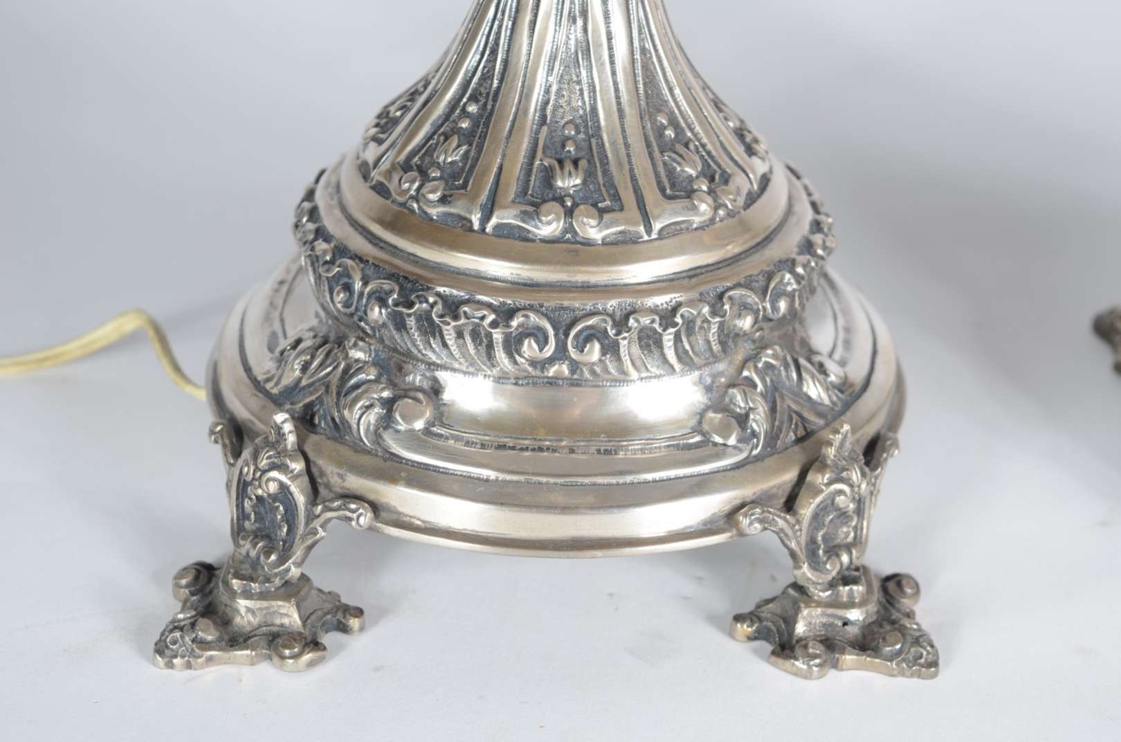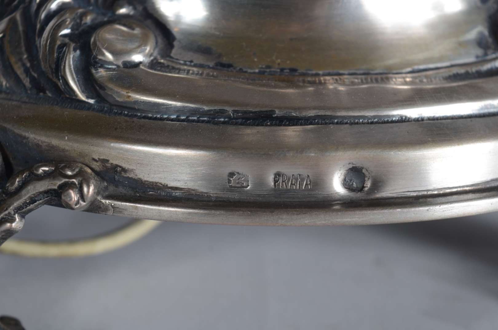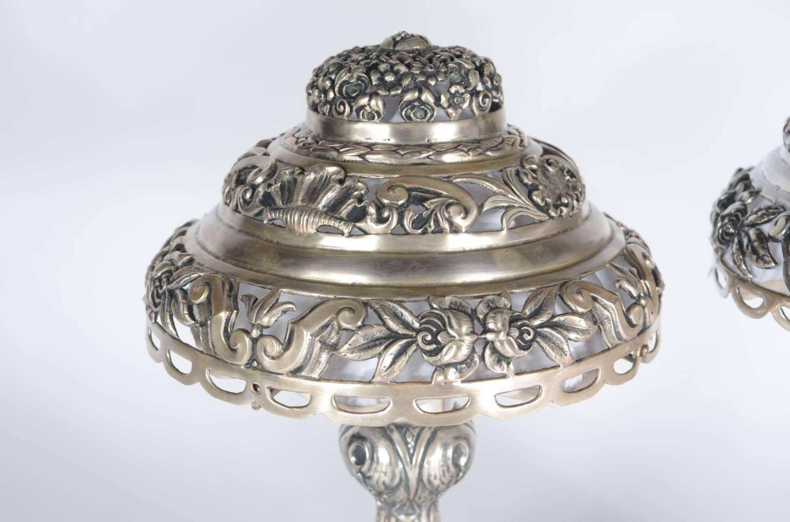 Par de castiçais de prata, contraste 833 mls. Peso da prata: 440 g. (Por motivos de segurança a peça não se encontra ...