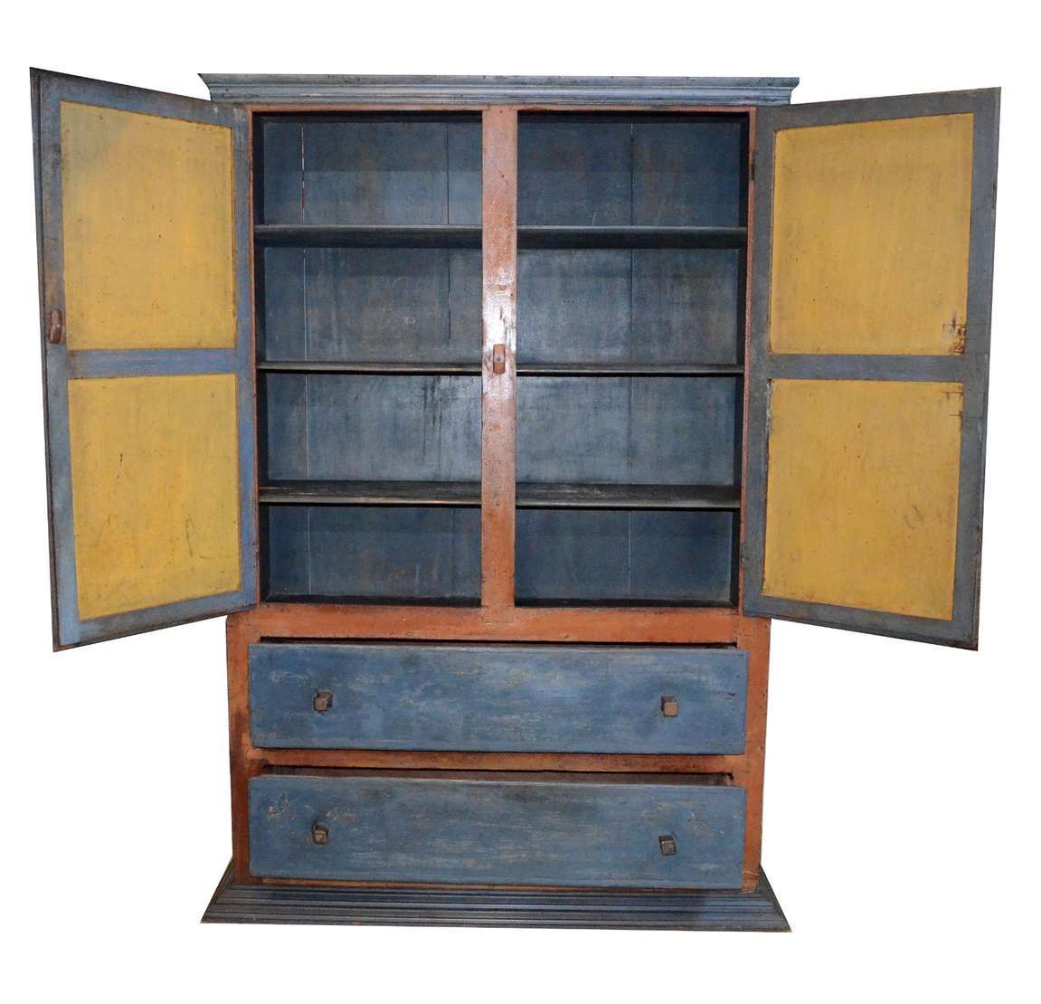 Móvel de madeira nobre com tampo de mármore, parte inferior com tres portas, e superior com duas portas e prateleiras...