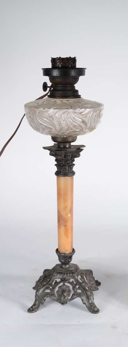 Lustre estilo Império de metal e contas de cristal lapidado.