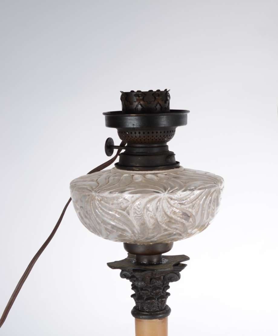 Grande abatjour de metal base com "esferas" e cúpula na cor bege, desgastes.