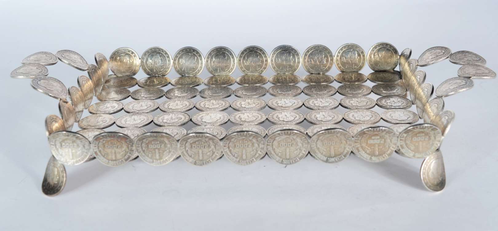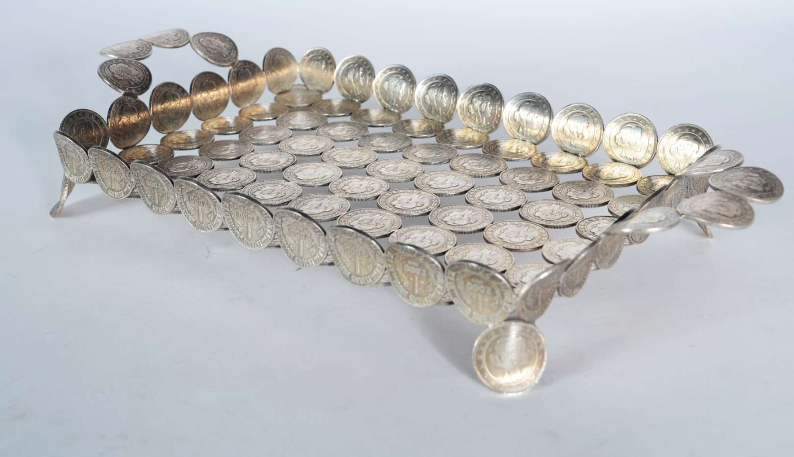 Salva de prata contrastada, borda recortada. Peso da prata: 470 g. (Por motivos de segurança a peça não se encontra n...