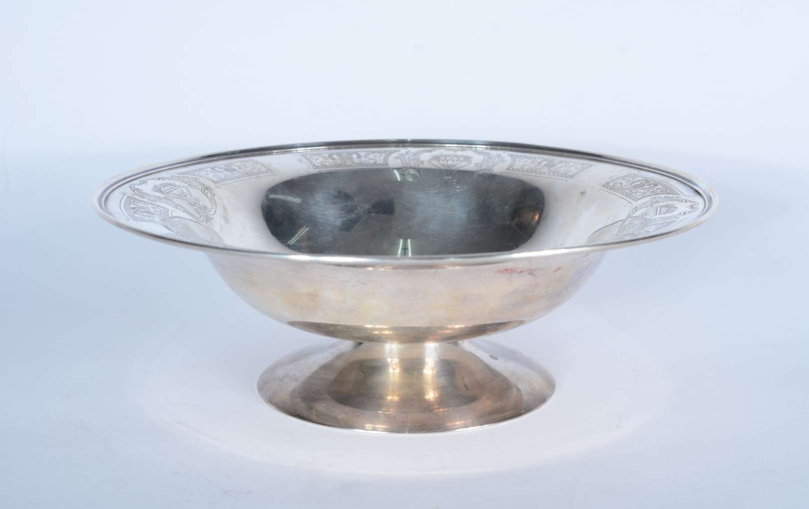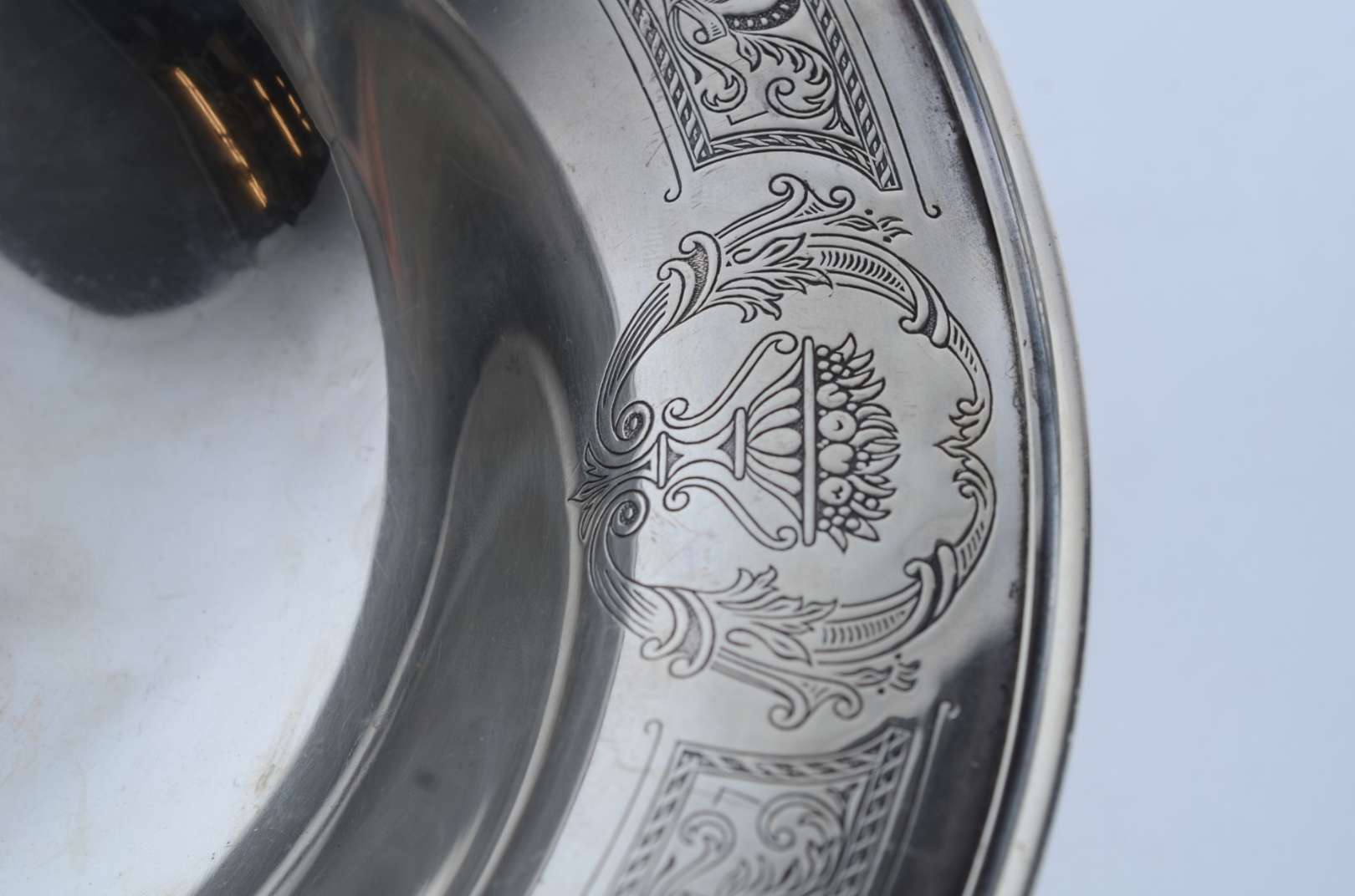 Salva de prata contrastada, borda recortada. Peso da prata: 470 g. (Por motivos de segurança a peça não se encontra n...