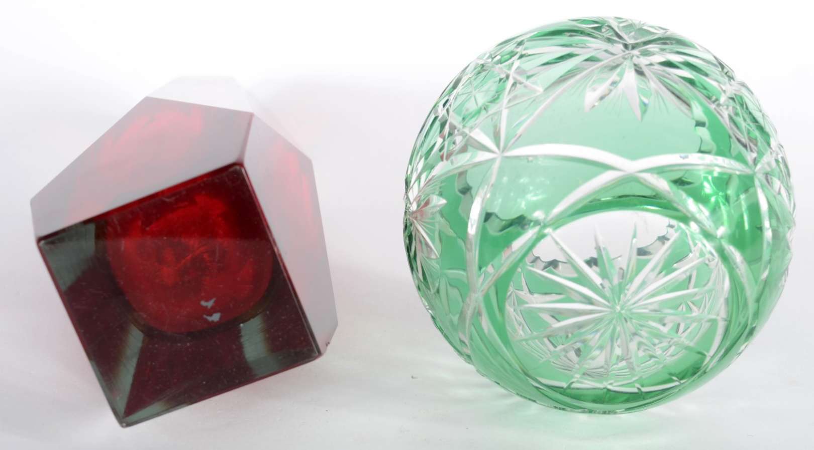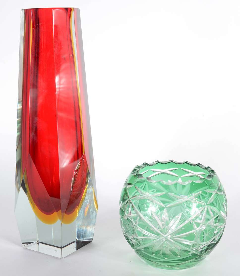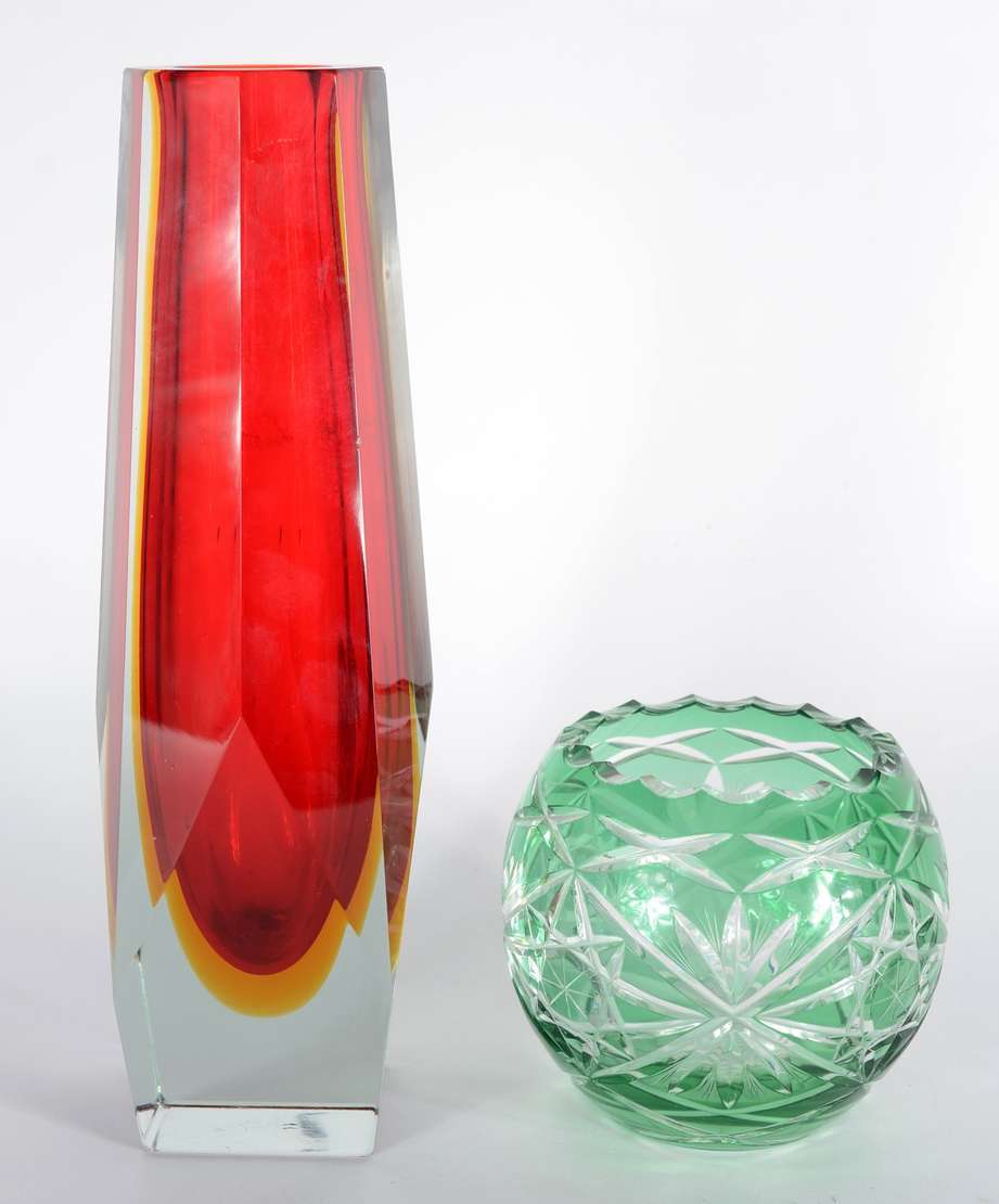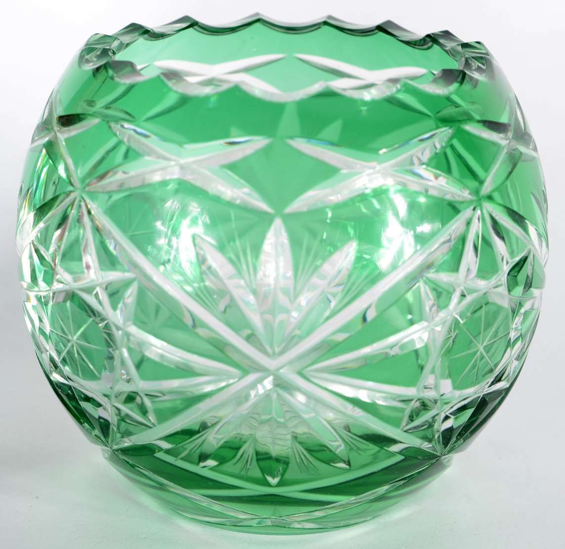 Vaso de cristal tcheco lapidado, borda recortada.