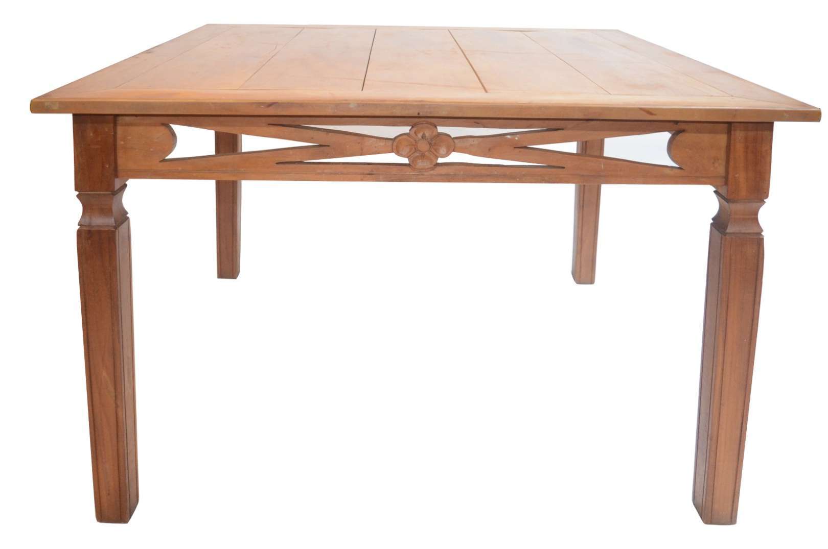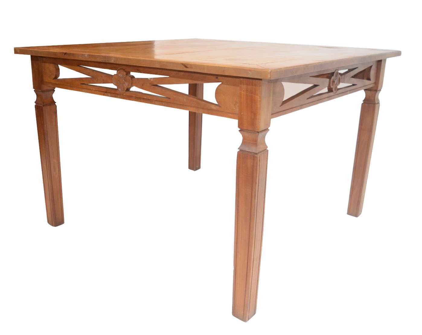 Coluna de madeira nobre ao gosto oriental, saia e parte superior das pernas com rico trabalho de entalhe floral. Tamp...