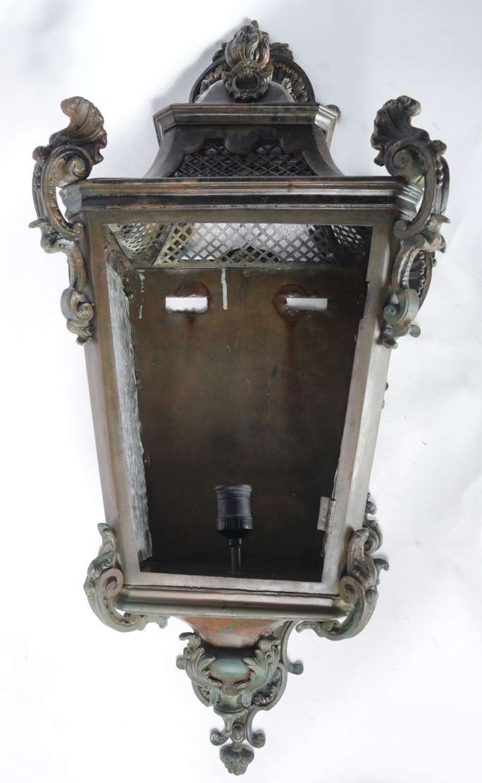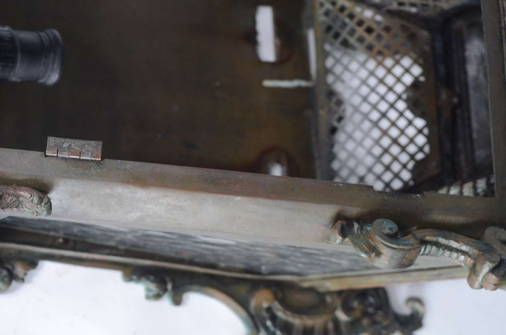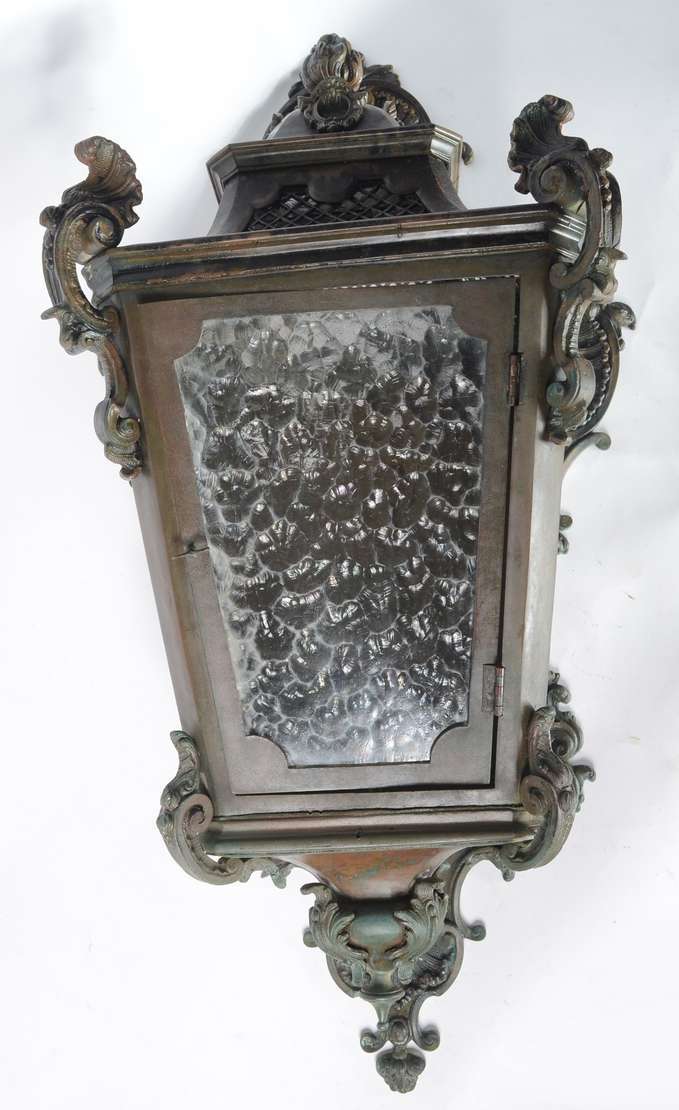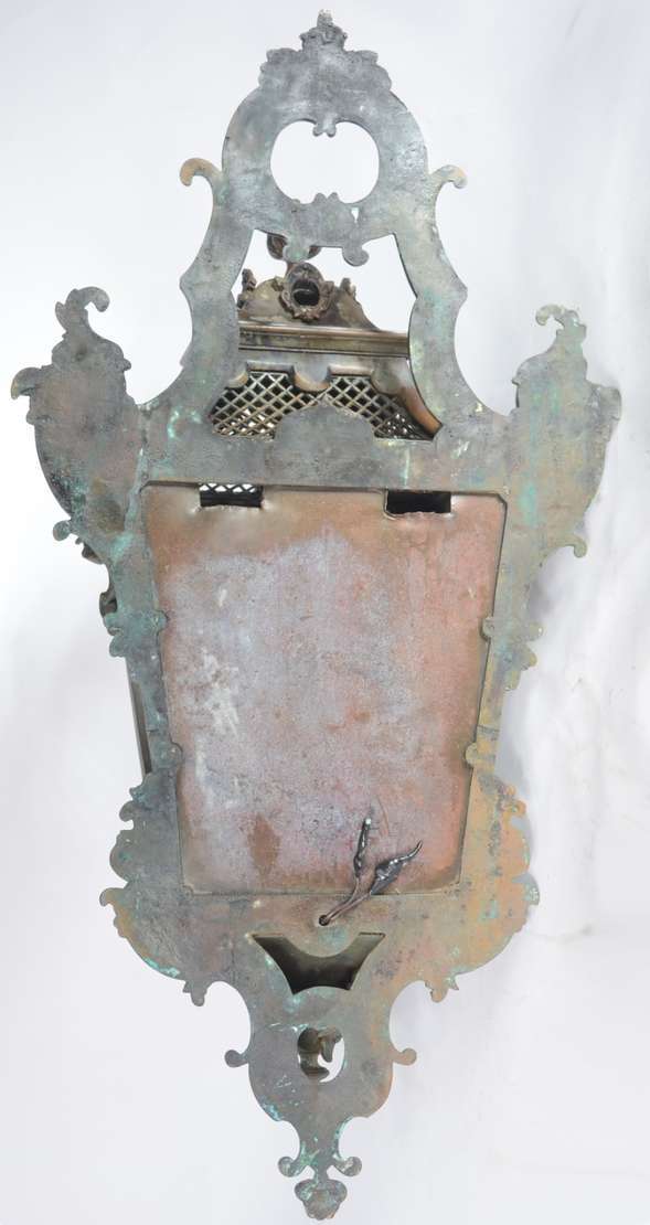 Lanterna de overlay branco com flores em policromia e correntes de metal dourado. Lascado.