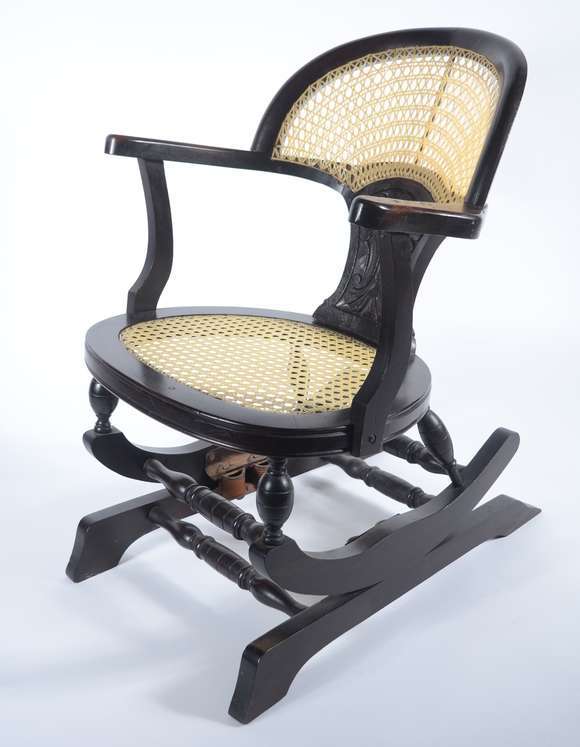 Cadeira de balanço de madeira nobre forração de palhinha sintética.