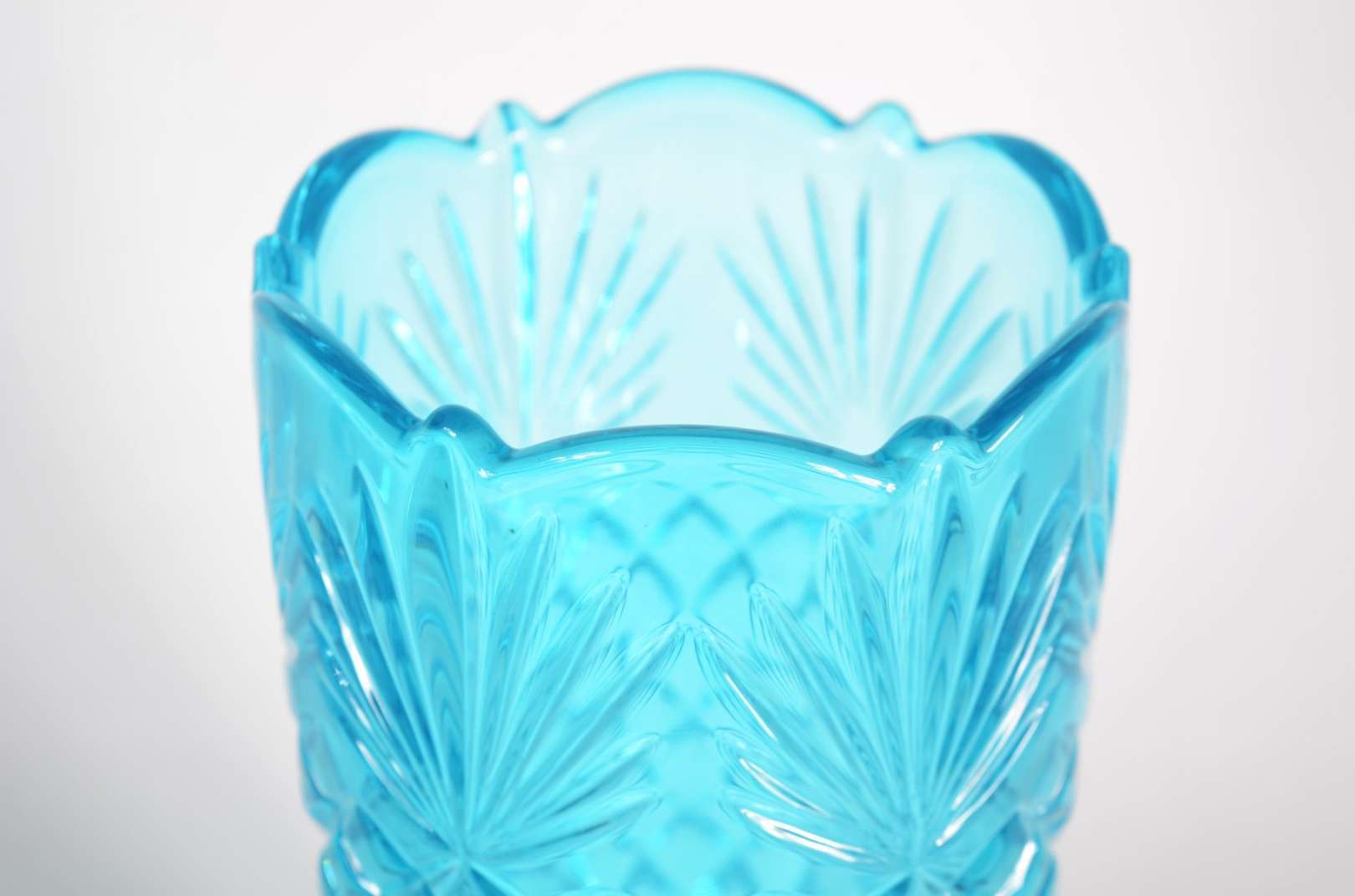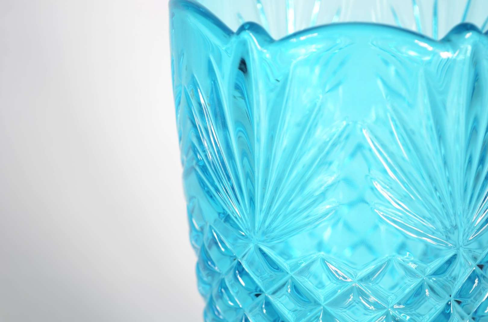 Vaso de vidro decorativo em mesclas nas cores verde, âmbar, preto e branco.