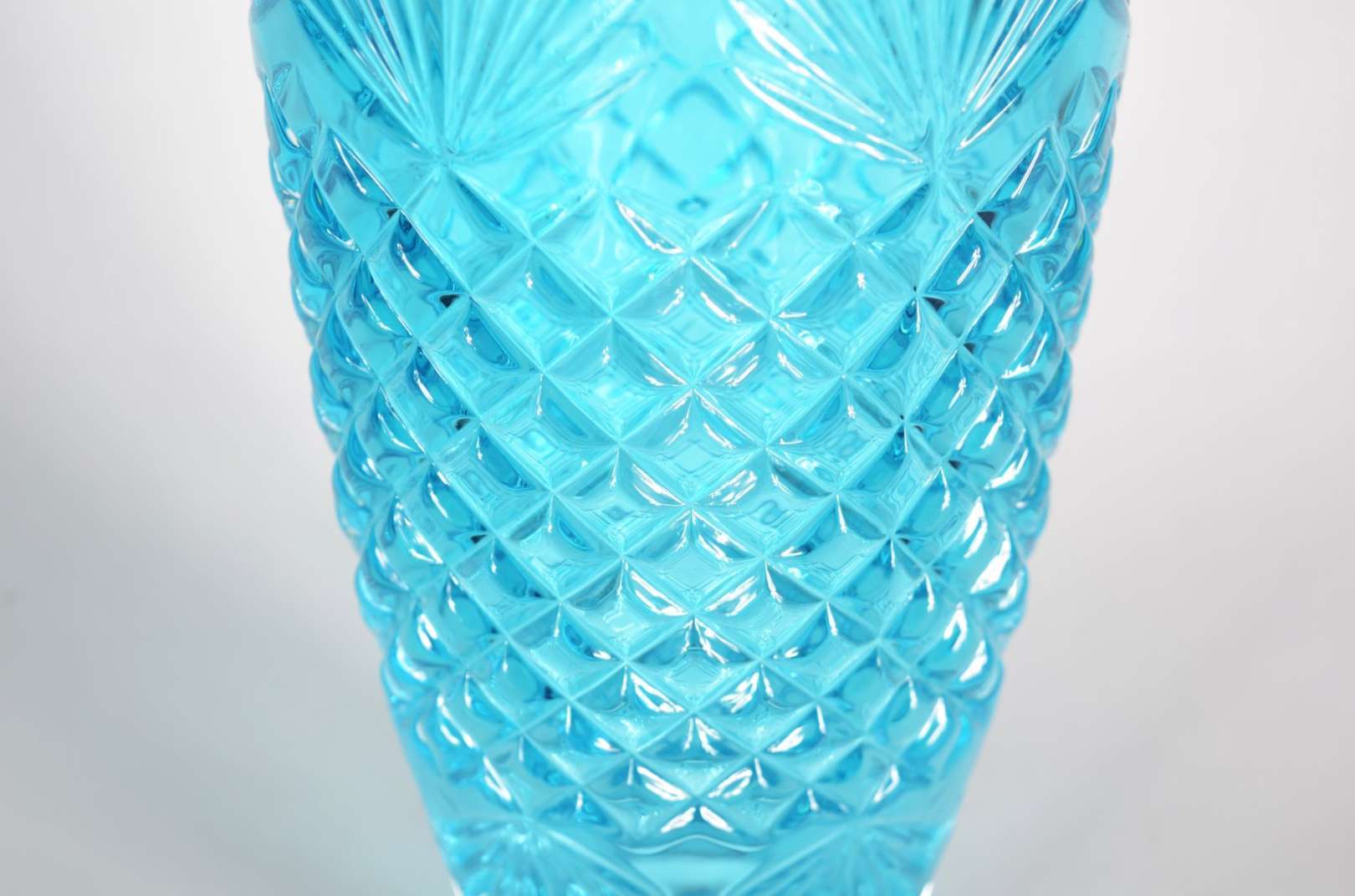 Vaso de murano italiano na cor laranja com pó de ouro, trabalhado em gomos com alças laterais feitio "laçarotes". Tri...