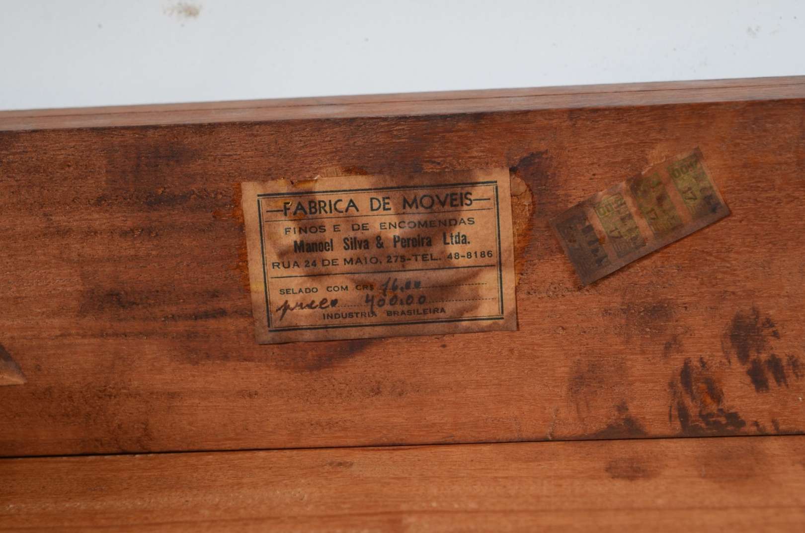 Aparador de jacarandá estilo Luis Felipe, saia recortada, pernas arqueadas ligadas por traves em "X" arrematadas por ...