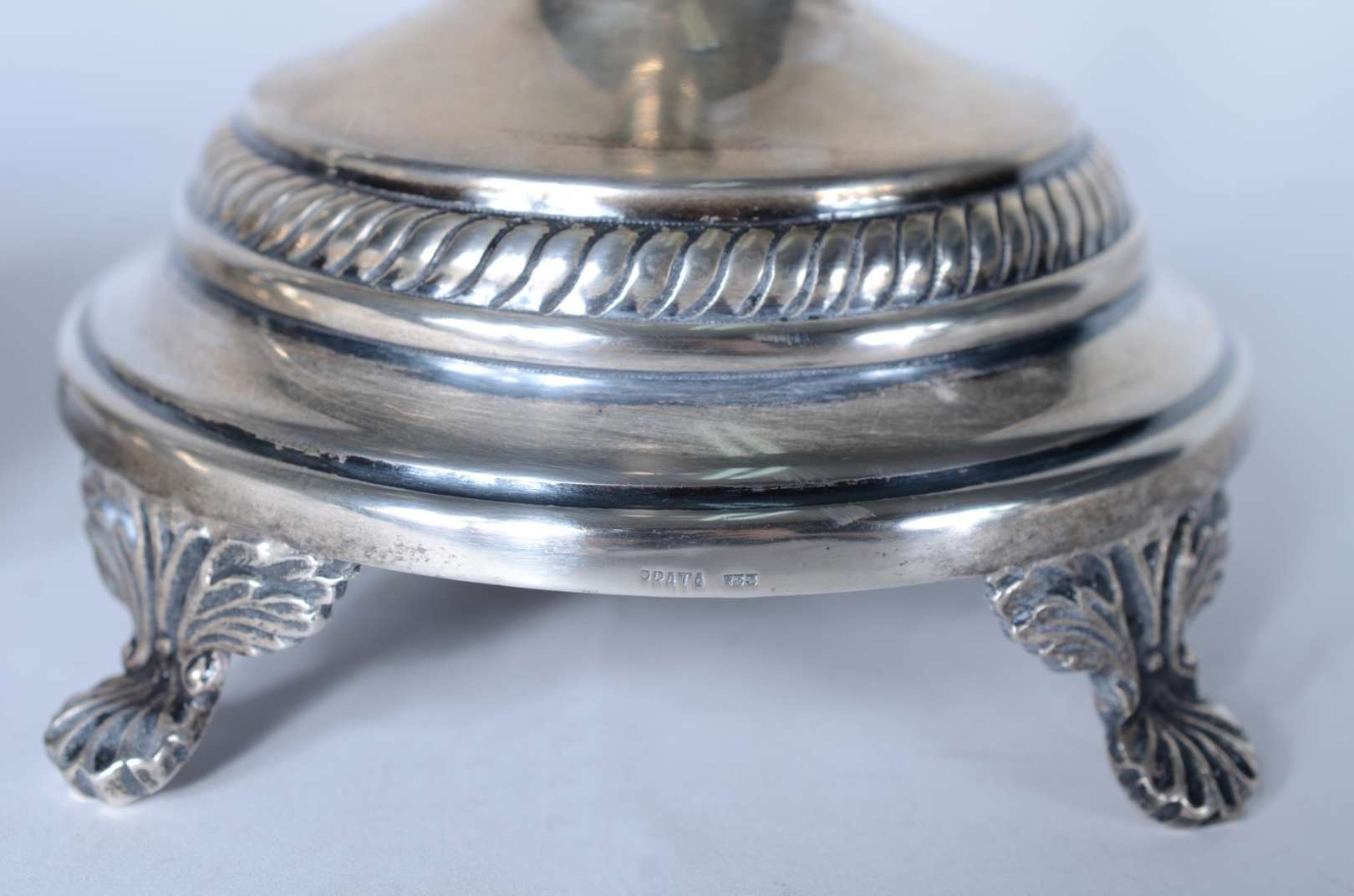 Par de abatjoures de prata contrastada, cúpulas trabalhadas com flores e folhagens vazadas. Peso da prata: 1400 g. (P...