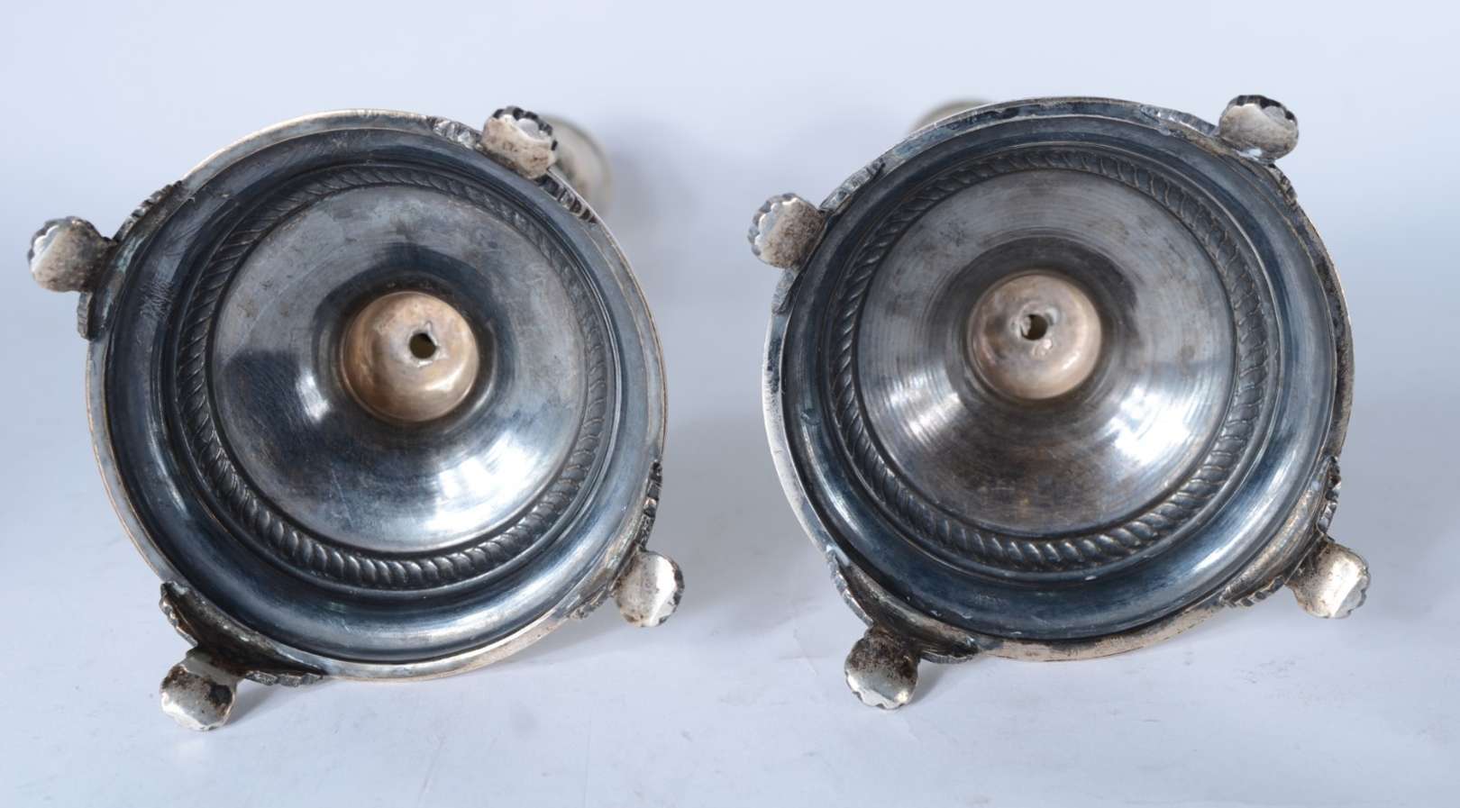 Par de candelabros para 3 velas cada de prata contraste 800 mls. Amassados. Peso da prata: 2500 g. (Por motivos de s...