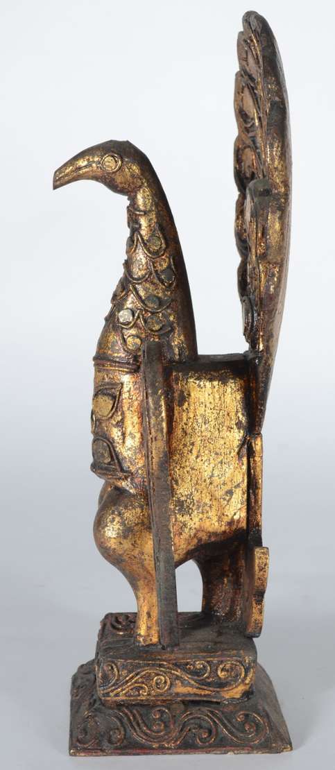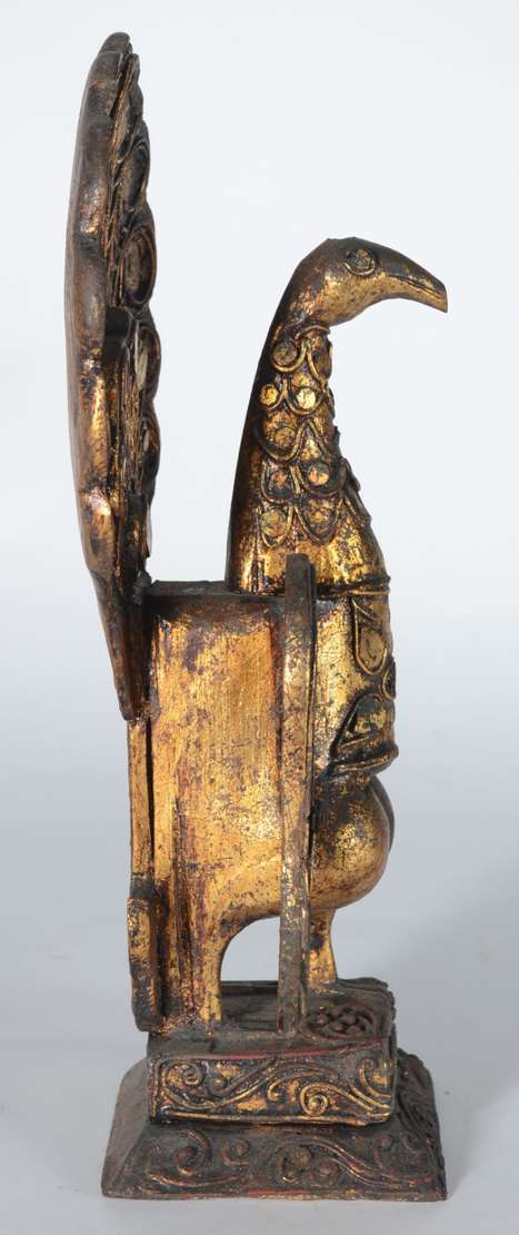 Par de figuras de black-a-moor sustentando bandejas de madeira entalhada e policromada com realces dourados. Pequeno ...