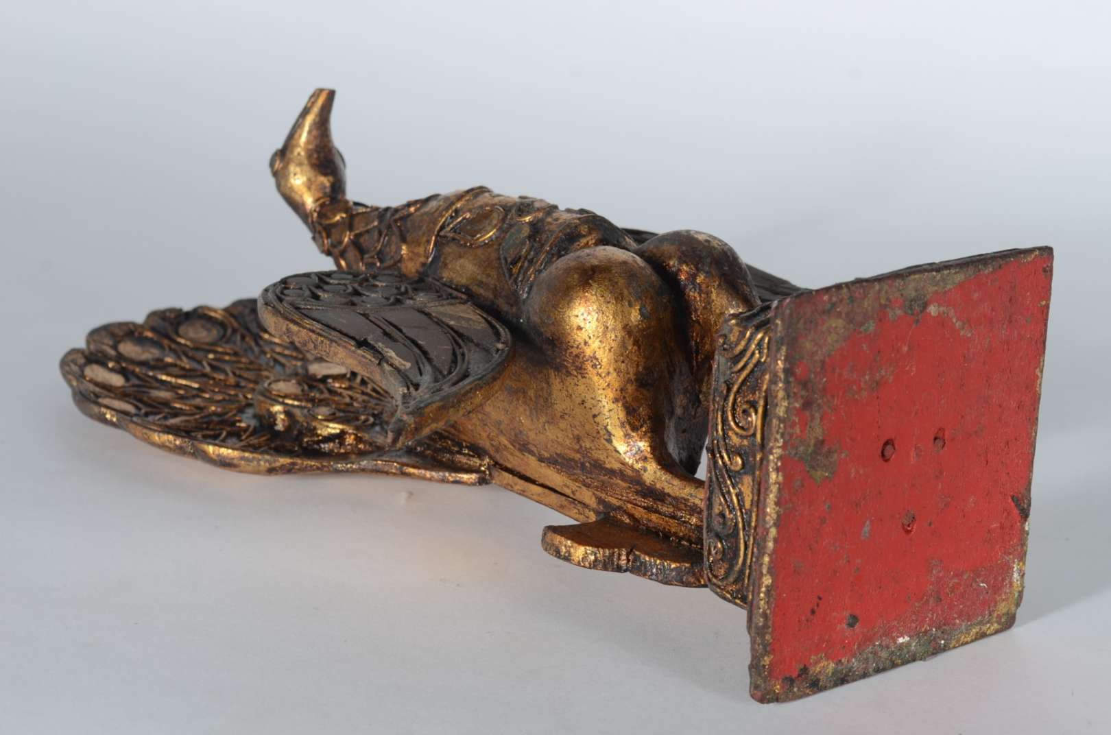 Crucifixo com figura de Cristo de metal pintado de dourado.