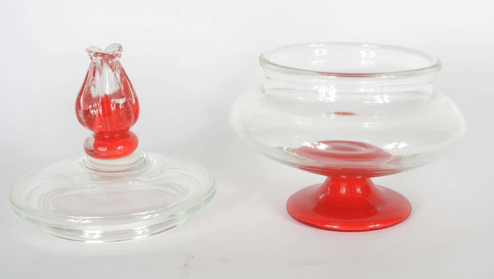 Diversas peças de cristal/vidro, sendo: prato para bolo, fruteira de vidro frisado, 3 travessas retangulares e 14 por...