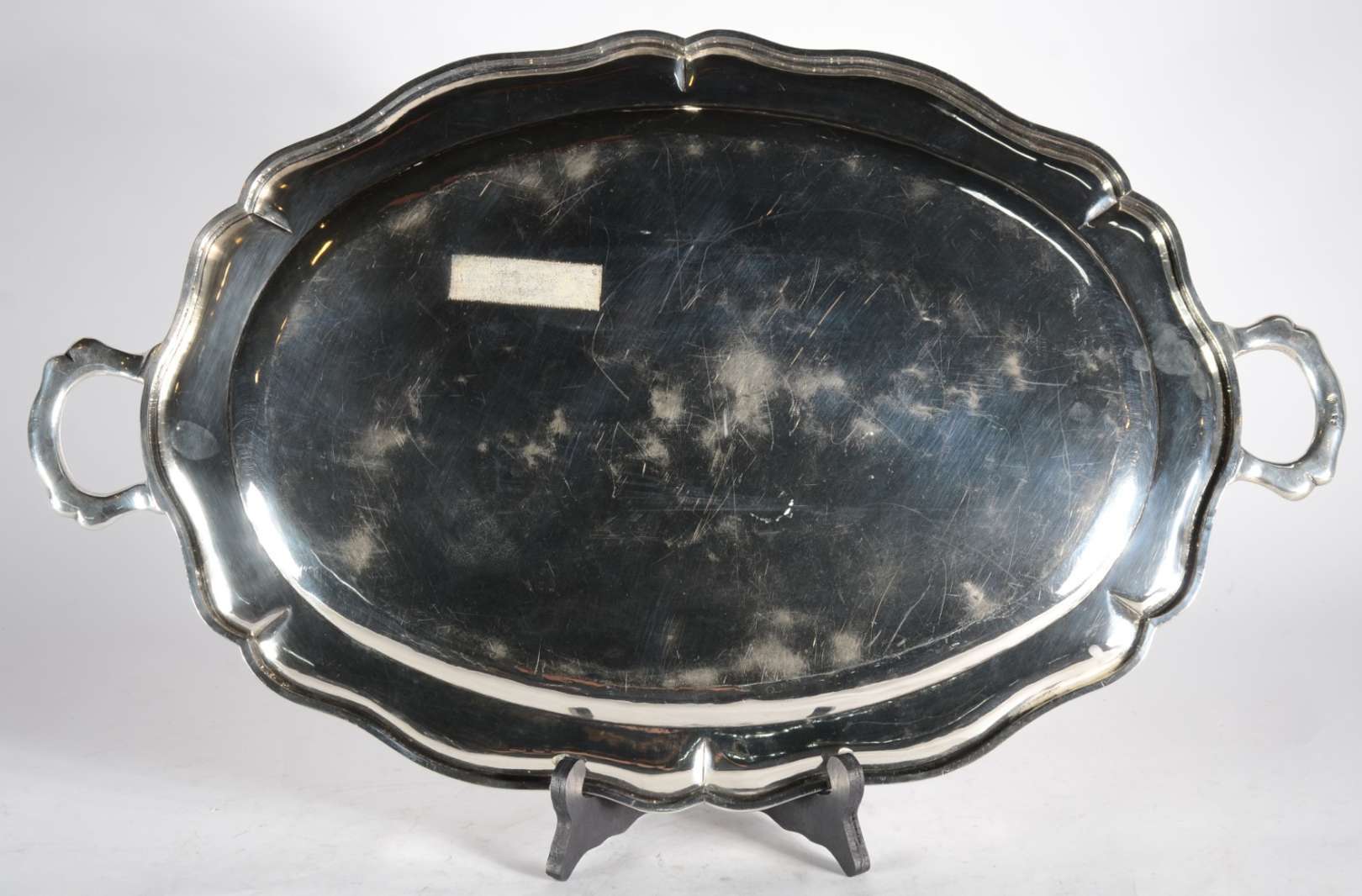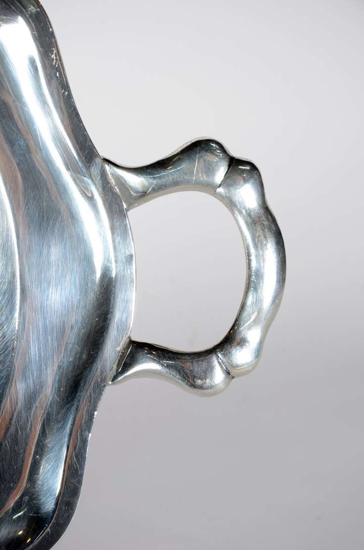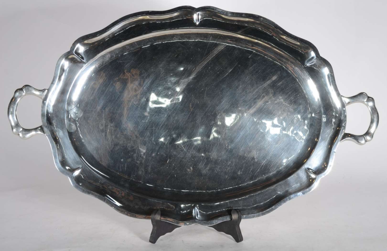 Bandeja de prata mexicana Sterling com alças, borda recortada. Peso da prata: 1800 g. (Por motivos de segurança a peça não se encontra na loja).