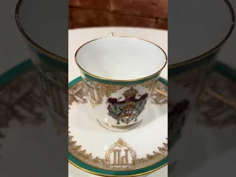 Belíssimo serviço para sobremesa de porcelana francesa Leveillé, Rue Thiroux, ricamente decorado com guirlandas flora...