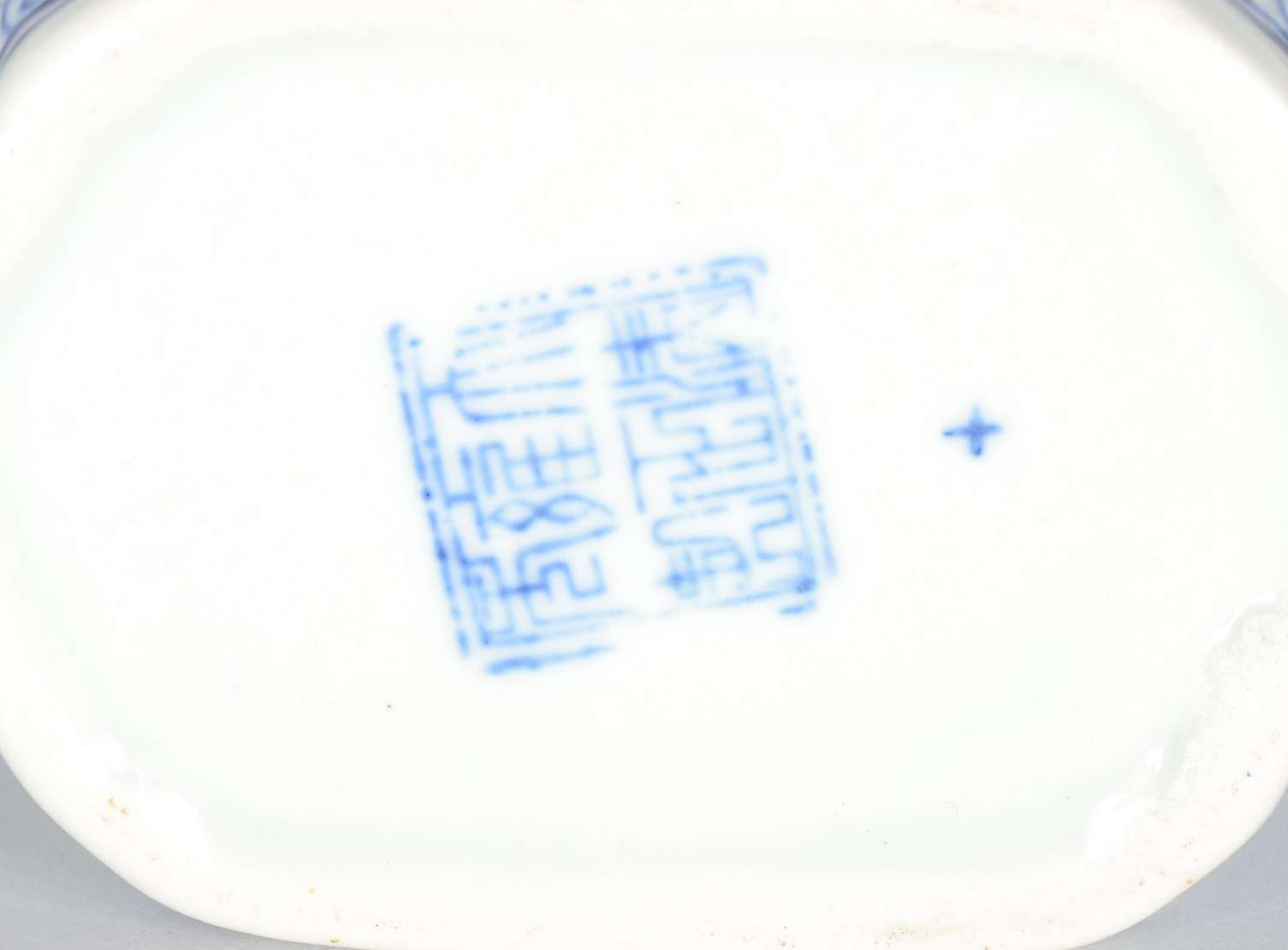 Serviço de chá de porcelana oriental decorado com pássaros e flores em tons de rouge de fer e dourado, composto de: 5...