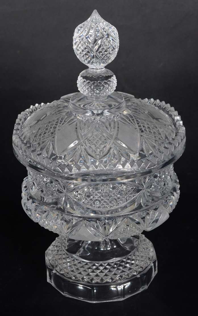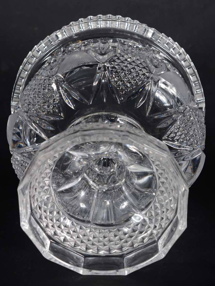 Serviço de cristal tcheco decorado na borda com tarja dourada, pés altos facetados, composto de: 12 taças para água, ...