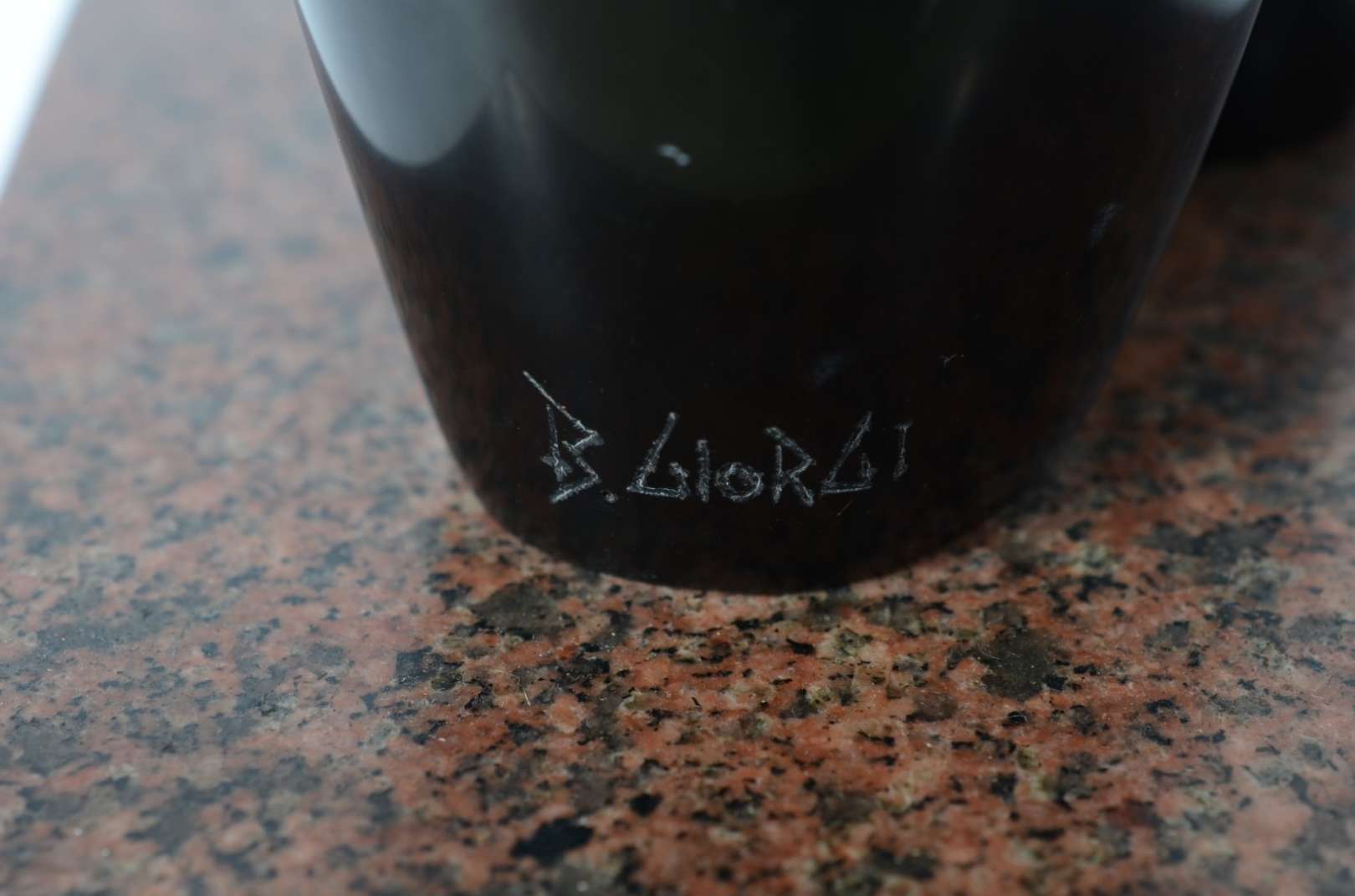 Par de cães de fó de cerâmica patinada na cor vinho.