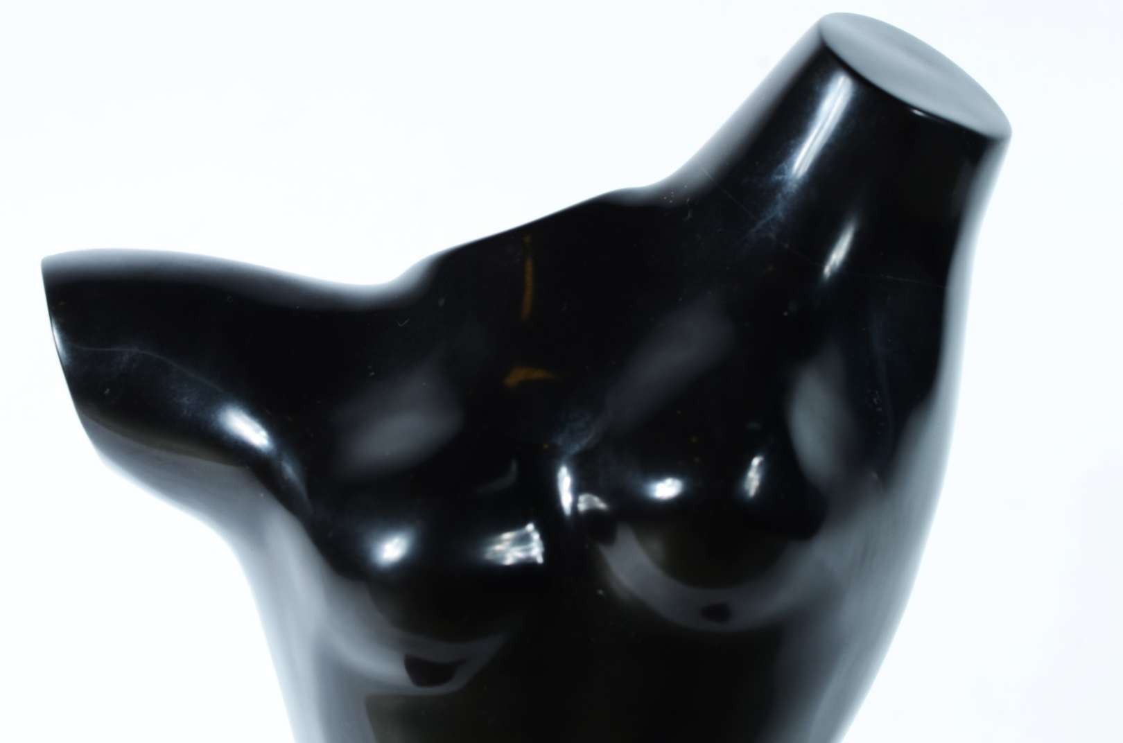 Escultura de bronze representando Pierrot com rosto de marfim, base de ônix.