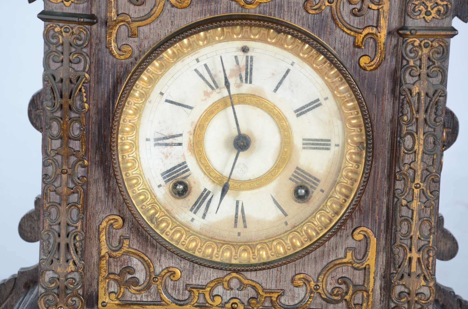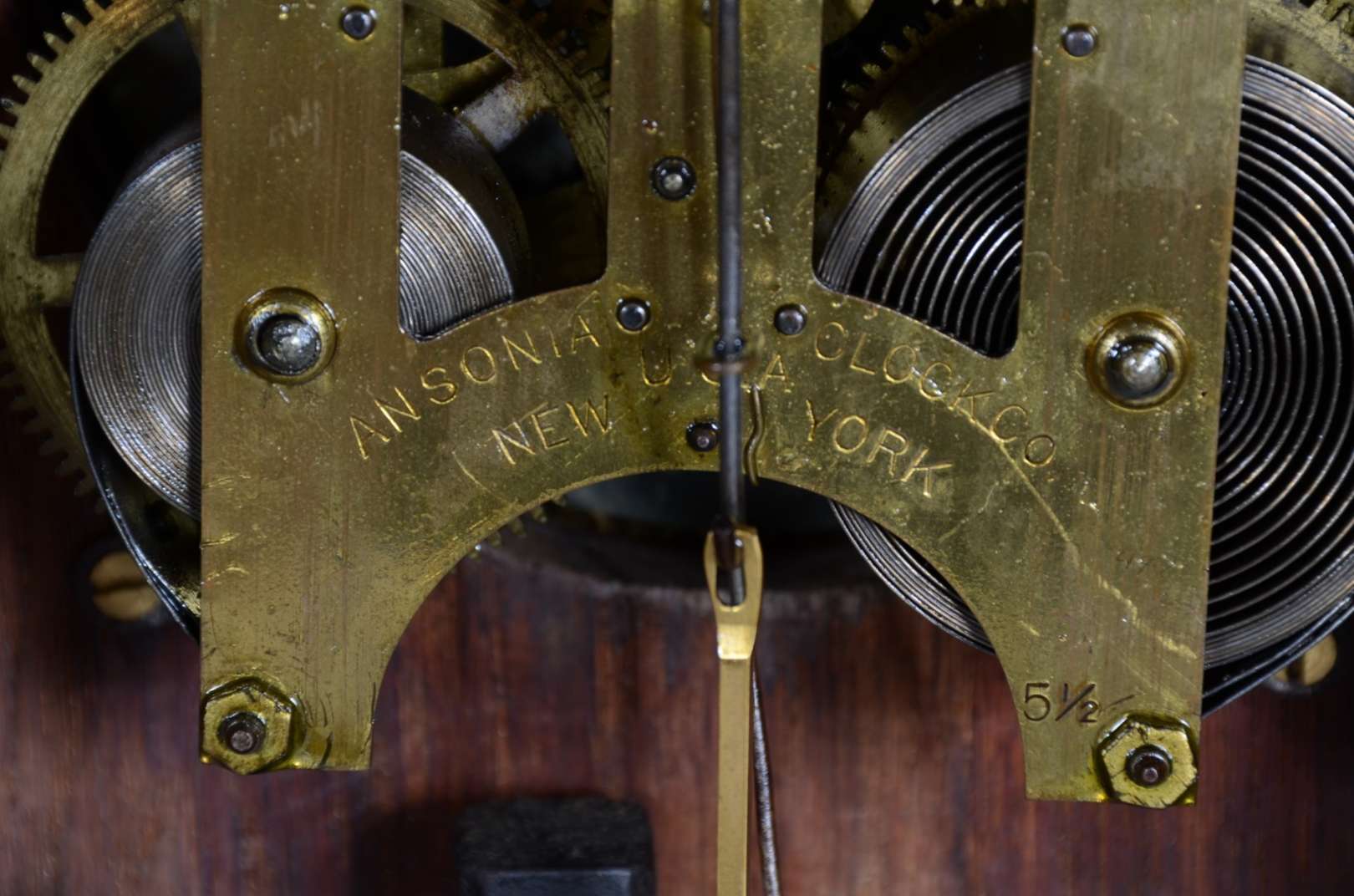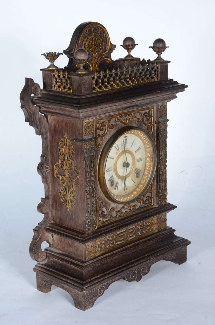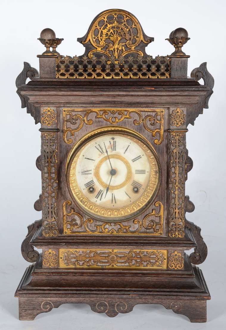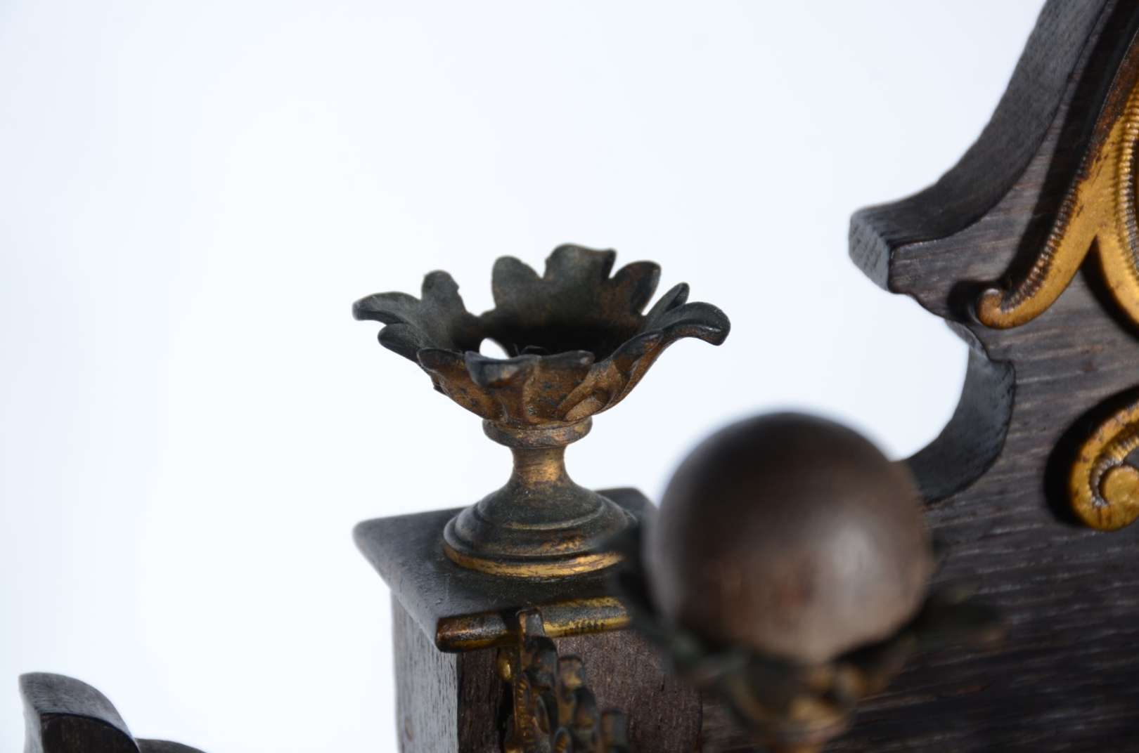 Coluna de madeira parquetada, estilo francês, tampo de mármore, grade e aplicações de bronze. Pequenas partes faltant...