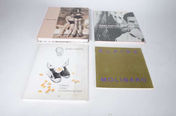 Quatro livros diversos: A) Occhiomagico InterioresB) Alexandre Muy Fricções HistóricasC) Renina KatzD) Gordon Cheung