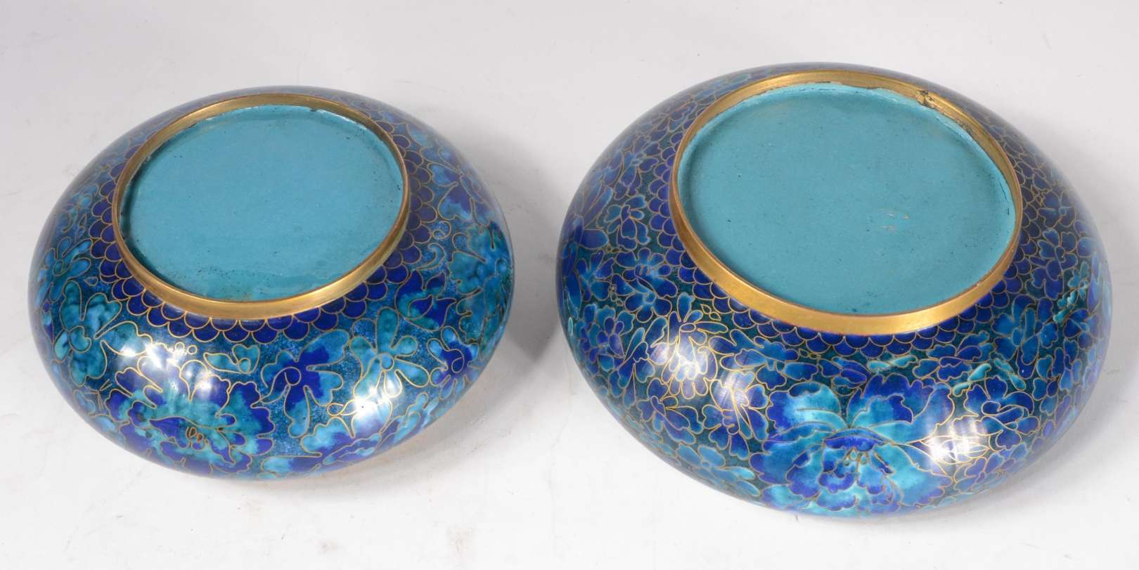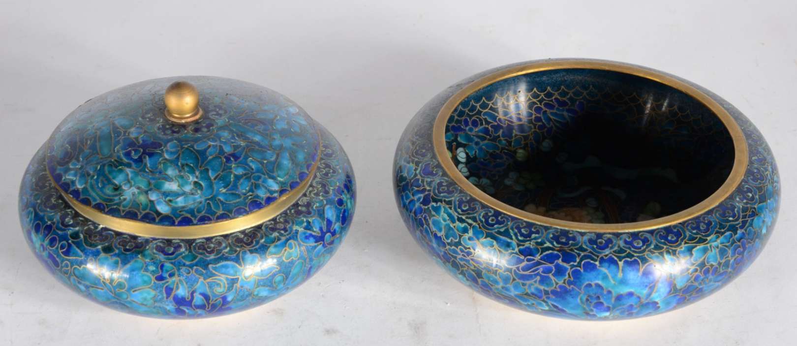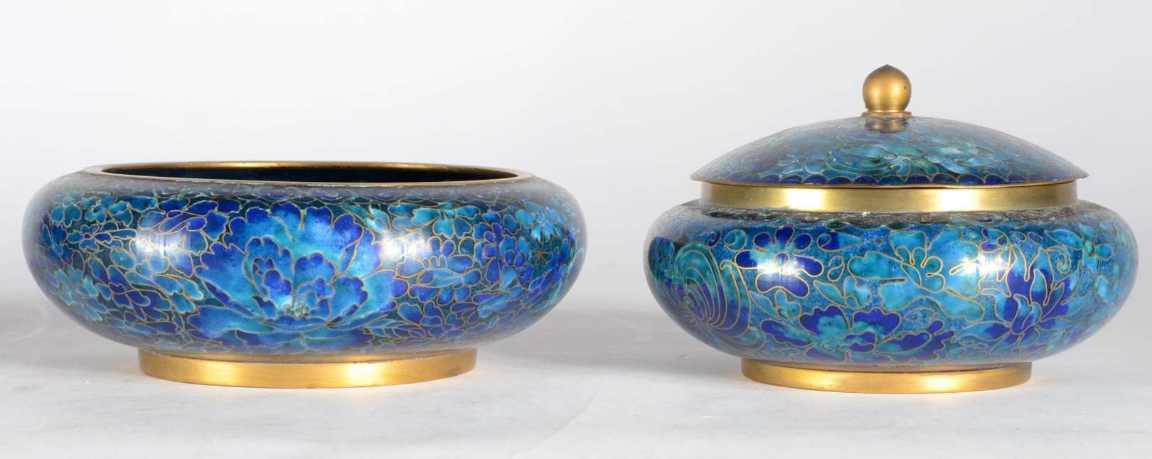 Cachepot de faiança azul cobalto com guirlandas florais, interior na cor azul turquesa.
