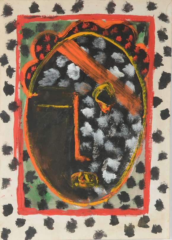 Acrílico sobre papel. Série Africana. Datado 83. Assinado no verso.