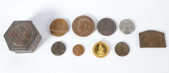 Diversas peças de metal e bronze, sendo: 9 placas e uma caixa sextavada (desgastes). Total: 10 peças.