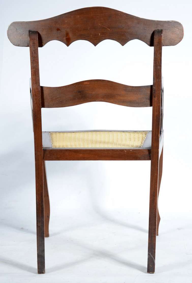 Conjunto com 4 cadeiras de madeira nobre patinads de dourado, estilo frances, pernas frontais cilíndricas e frisadas,...