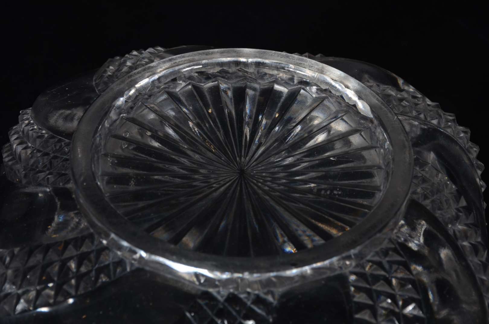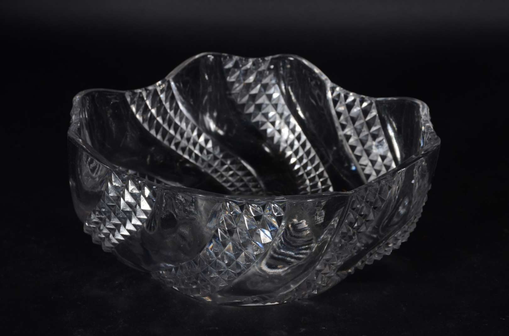 Três peças de cristal lapidado, sendo: garrafa bico de jaca e dois vasos (pequenos bicados).