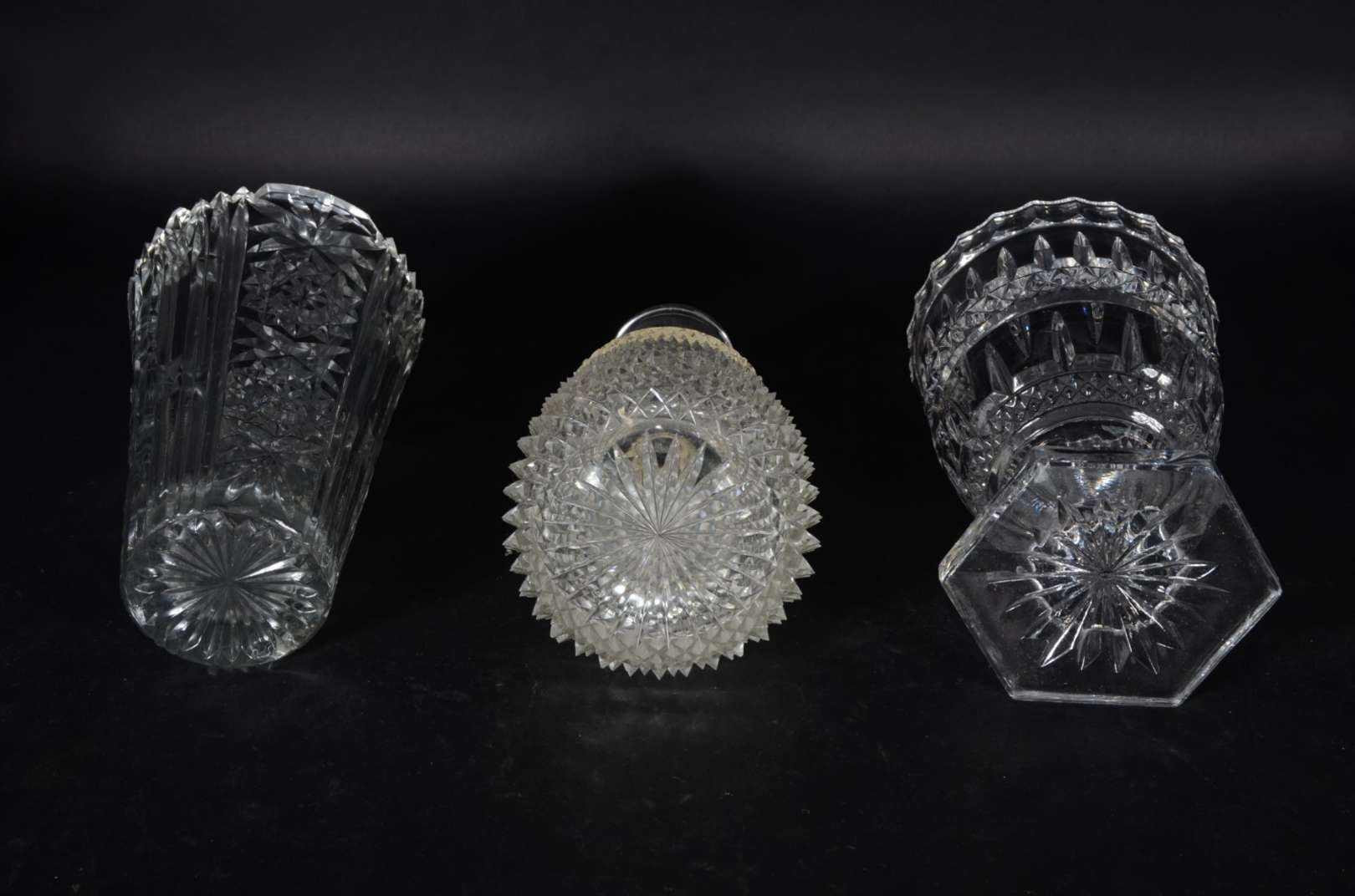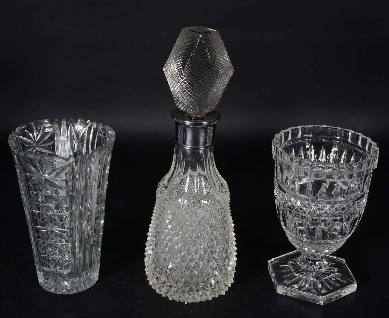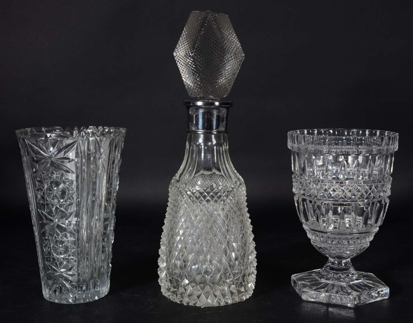 Diversas peças de cristal frances lavrado com rica pintura de guirlandas em ouro brunido, sendo: duas licoreiras com...